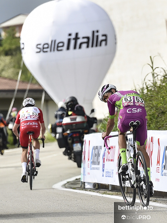 Passano a 8 secondi di distanza l’uno dell’altro. Gavazzi e Carboni, i due italiani nella fuga col francese, lo spagnolo, i due belgi, il tedesco e il colombiano. Gavazzi arriva secondo e un po’ viene da mangiarsi le dita. Carboni alla fine è quinto, dopo aver viaggiato per un po’ in testa alla corsa. Prendere la dannata fuga del giorno non è stato affatto facile. Quasi 60 chilometri di scatti e controscatti. Quasi si fosse alla fine del Giro e tutto il gruppo volesse in qualche modo lasciare il segno. Anche se mancano due settimane. E giornate come questa le sentiranno certamente nelle gambe.