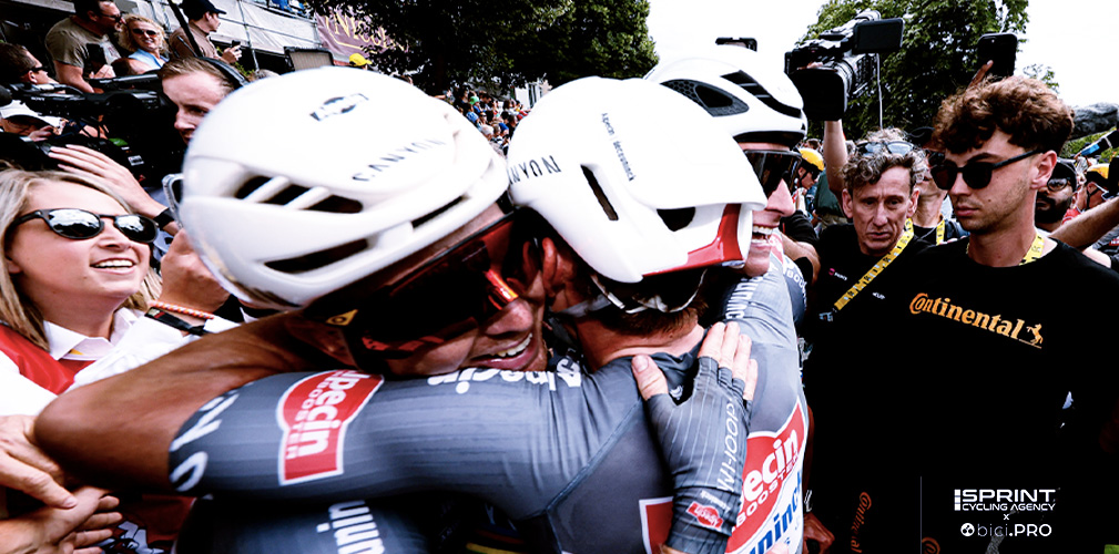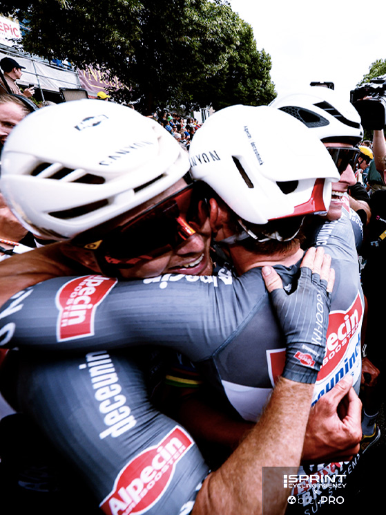Dall’altra parte c’è Jasper Philipsen che fa festa assieme alla sua Alpecin-Deceuninck. Tappa e maglia per il belga che, come sempre, ha potuto contare su un Van der Poel magistrale. Ma va detto che tutta la sua squadra era ben messa. Pensate, ne avevano cinque tra i 38 davanti dopo che si erano aperti i ventagli.