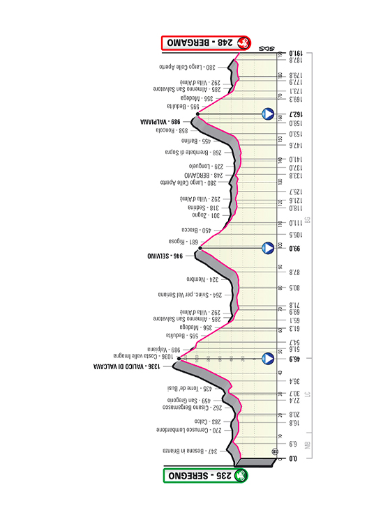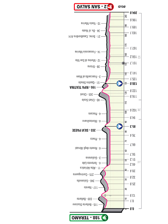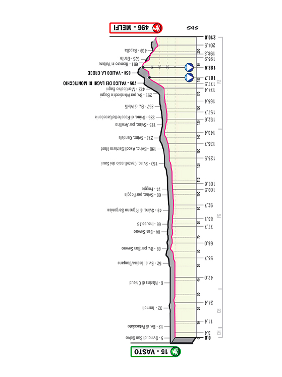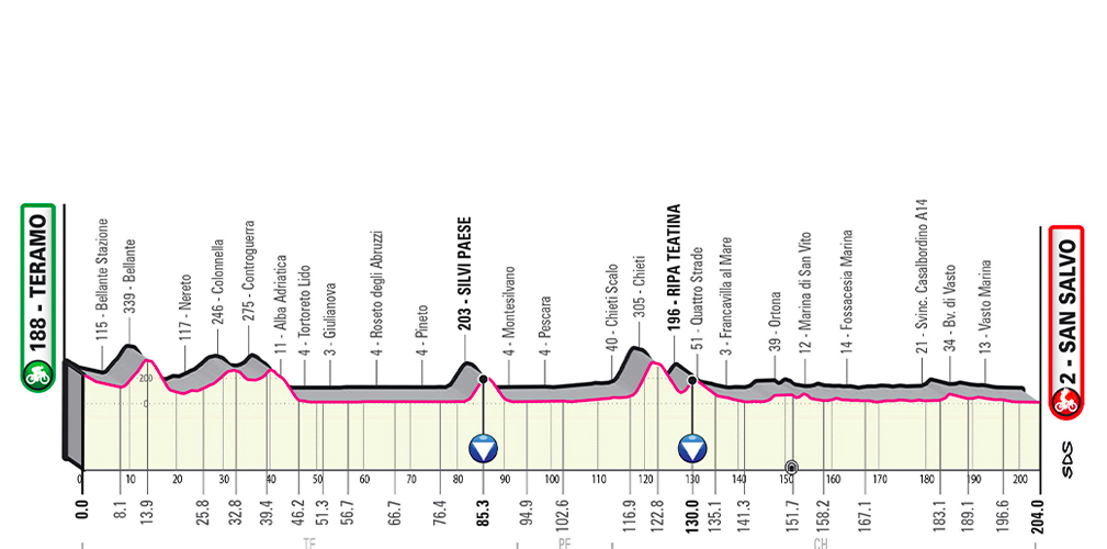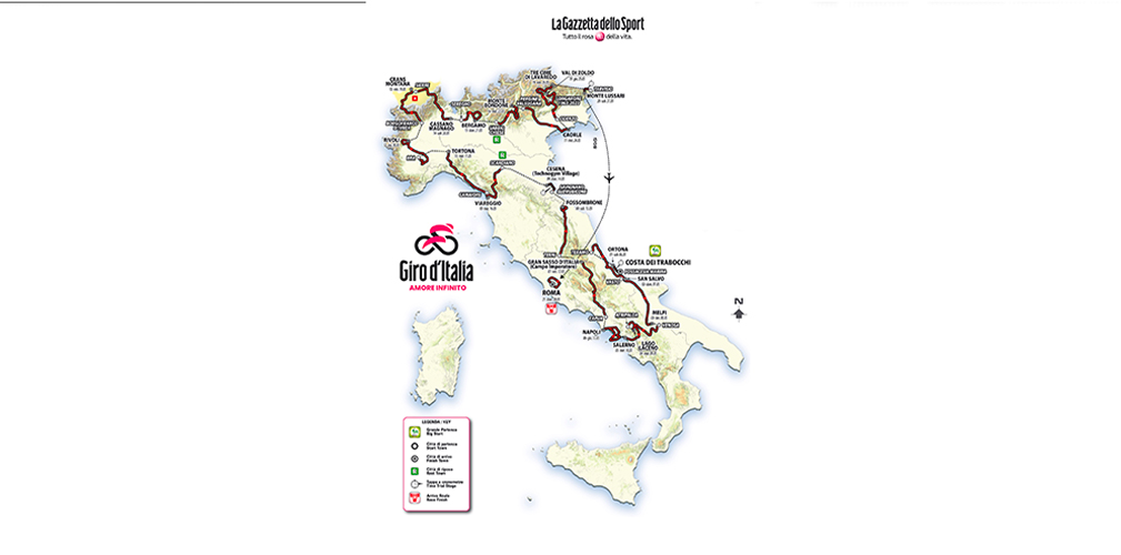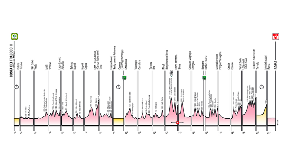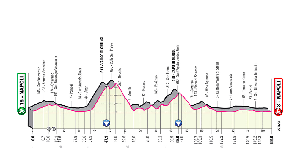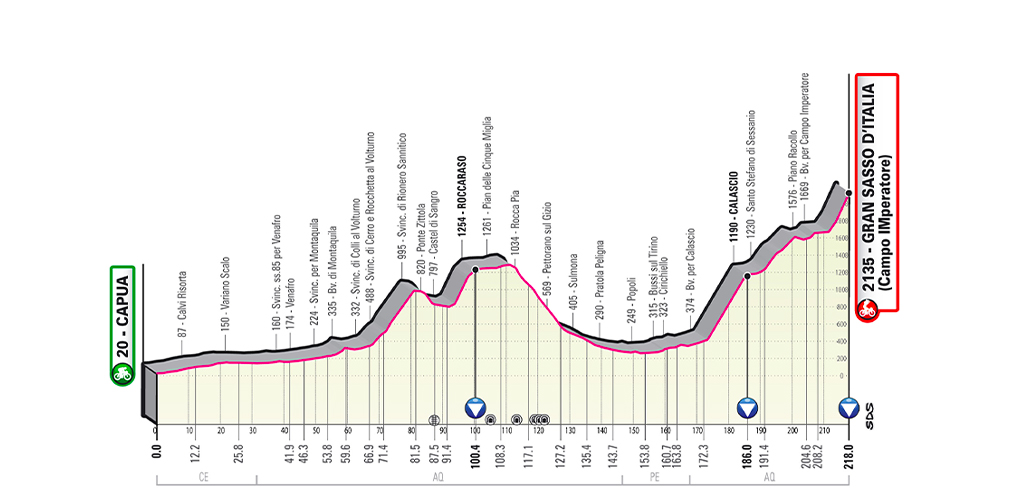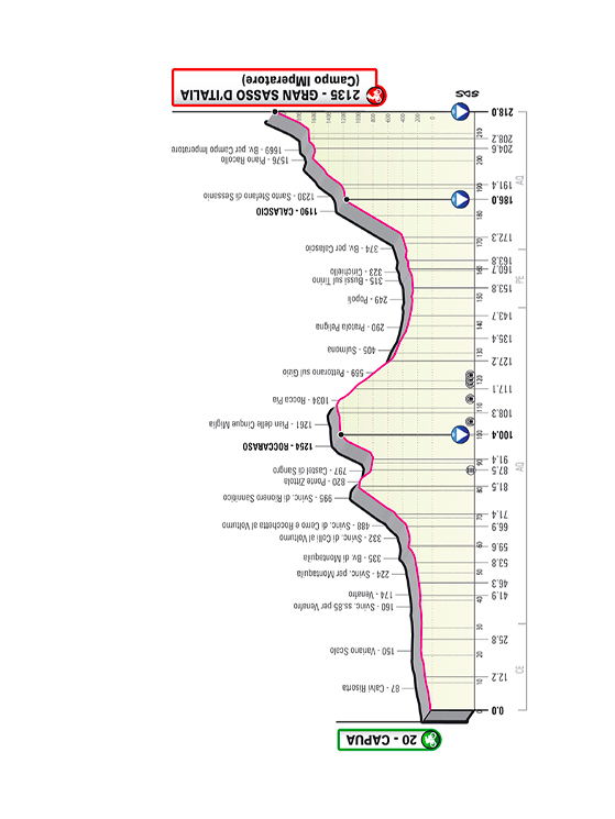 Il dislivello complessivo è di 51.300 metri, per una media giornaliera di 2.443 a far capire che per le gambe dei velocisti sarà comunque un percorso impegnativo: sono davvero poche le occasioni di volate… rilassanti. Valga come esempio la tappa di Napoli: sarà volata, probabilmente, ma prima ci sarà da scavalcare il Valico del Chiunzi. E proprio da Capua, alle porte di Napoli si partirà per il secondo arrivo in salita a Campo Imperatore, una salita che al giovane Evenepoel non dovrebbe spiacere.