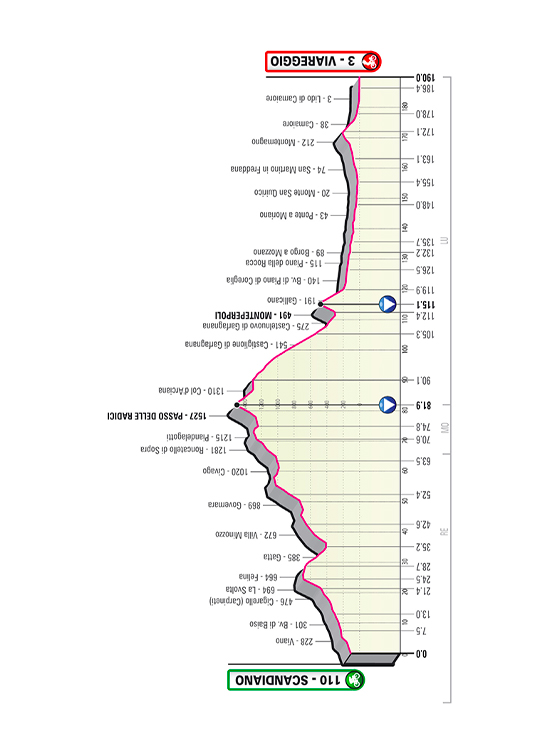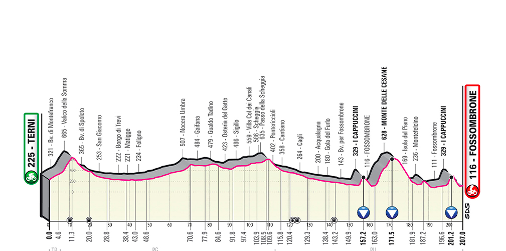 Ancora due tappe dopo il Gran Sasso prima di arrivare al riposo e una di questa è quella di Fossombrone, dedicata ai perfidi muri marchigiani. Se corrono come di solito negli ultimi tempi, anche quel giorno al classifica potrebbe essere scossa, dato che si affronteranno i tremendi muri marchigiani, con pendenze prossime al 20 per cento. Unica accortezza: maneggiarli con cura. Il giorno dopo infatti la cronometro di 33,6 chilometri potrebbe essere un boccone difficile da masticare e mandare giù.