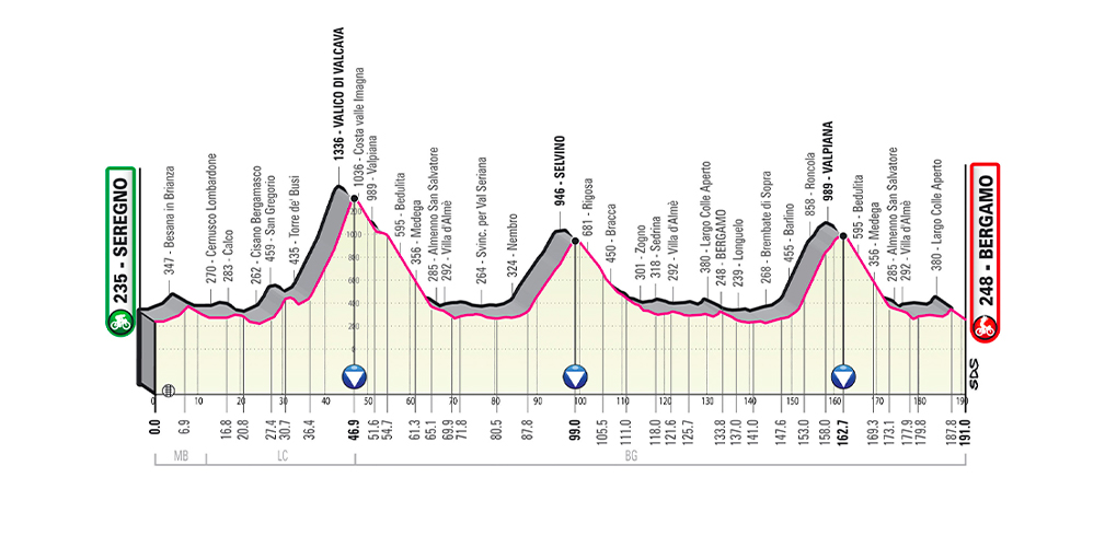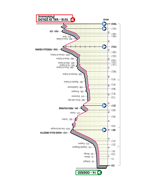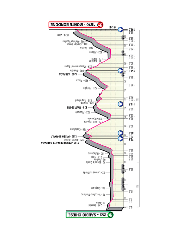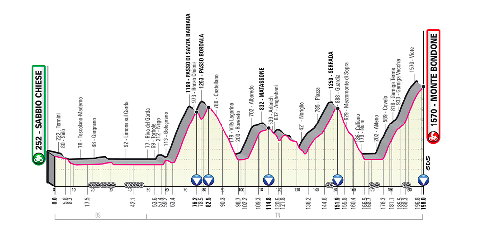 Difficile dire quale sarà a quel punto la classifica, ma di certo non sarà banale affrontare a questo punto l’arrivo del Monte Bondone (tappa con 5.000 metri di dislivello) con il Passo di Santa Barbara, il Passo di Bordala, l’altopiano di Folgaria e il Bondone dal versante di Aldeno.