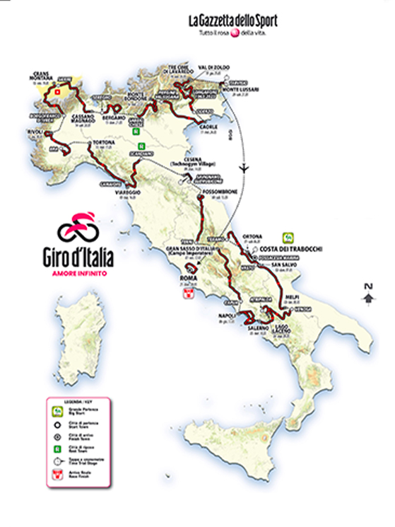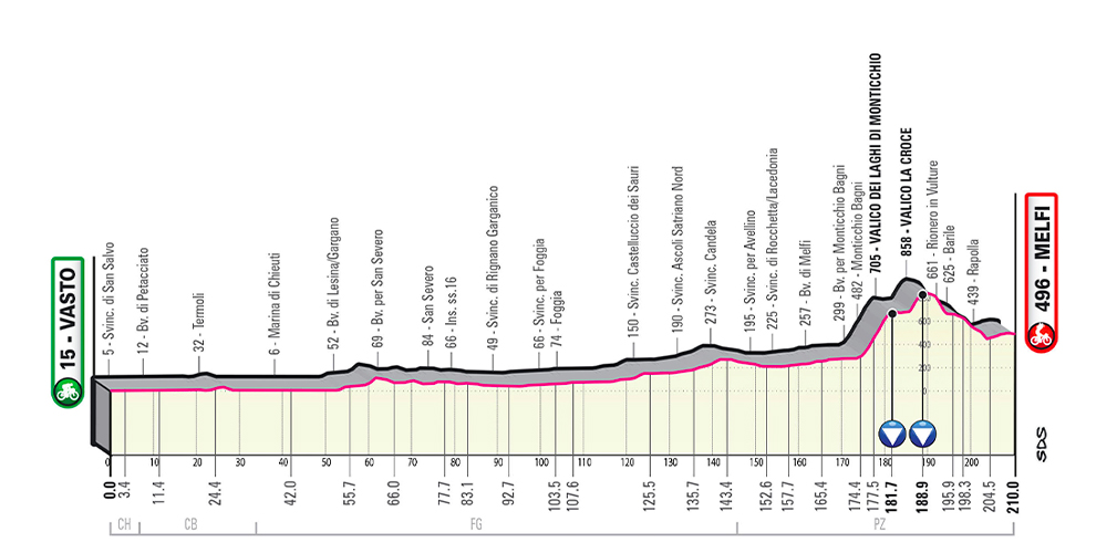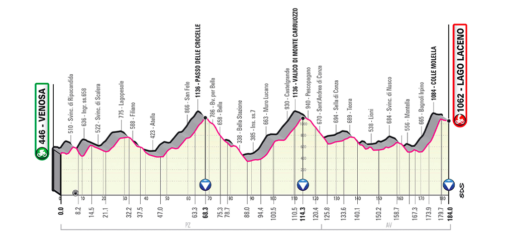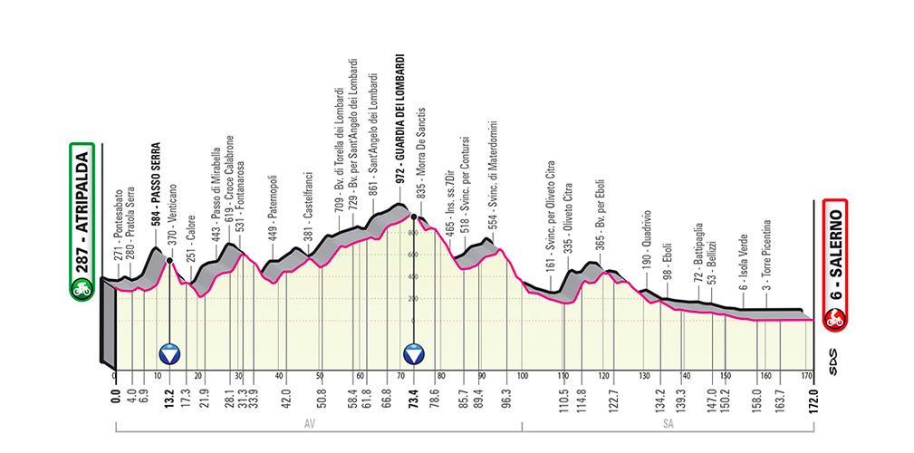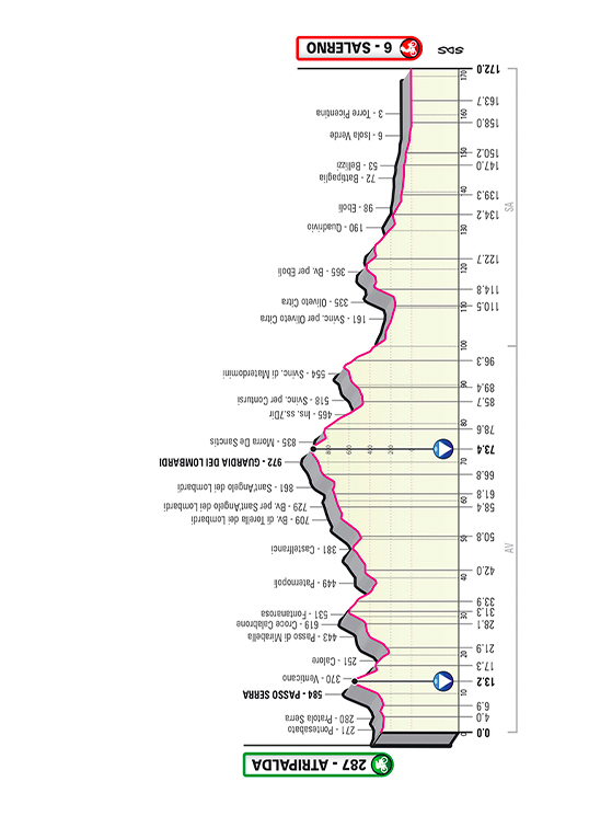 E’ un percorso… democratico. Il vantaggio eventualmente concesso ai cronomen sarà compensato dalla prima tappa appenninica, che con i suoi 3.500 metri di dislivello porterà il gruppo a Lago Laceno, terra di conquista di Pozzovivo, ma anche di Alex Zulle che nel 1998 piegò e fece arrabbiare Pantani.