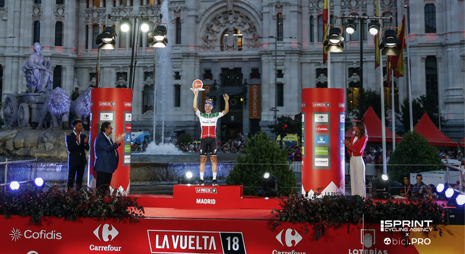 Non tutto funzionò alla perfezione. Il treno si era sfaldato anzitempo e mi ritrovai a dover lanciare la volata da lontano. Riuscii in una grande rimonta e ricordo che il primo pensiero fu alla scommessa che avevo fatto con Lefevere: il giorno del secondo riposo mi aveva promesso che se avessi vinto a Madrid mi avrebbe lasciato libero per il resto della stagione, significa che potevo chiudere anzitempo. Era stata una stagione tanto bella quanto stressante, quella vittoria fu la ciliegina sulla torta. Poi fu emozionante salire sul podio, io insieme a coloro che aveva conquistato le maglie, con i fuochi d’artificio tutti intorno. Fu davvero magico.