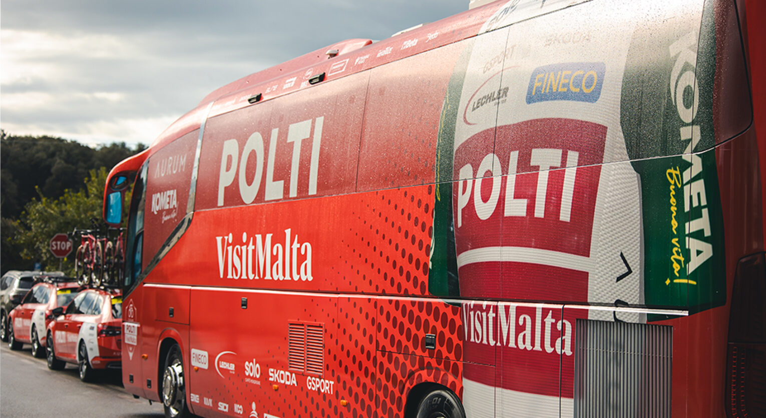 «La maglia, con i suoi colori identificativi, è il simbolo di questa squadra – dice Francesca Polti, Presidente e Amministratrice Delegata di Polti – ciò che più la rappresenta ed insieme rappresenta gli sponsor e i valori condivisi. Inserire l’immagine della maglia sul bus e gli altri mezzi pesanti è stata, quindi, un’idea che ci ha convinti da subito. Sia per l’originalità e l’unicità nel mondo ciclistico, sia perché permette ai nostri tifosi di identificare immediatamente e in modo efficace il Team Polti-VisitMalta, per le strade di tutta Italia ed Europa».