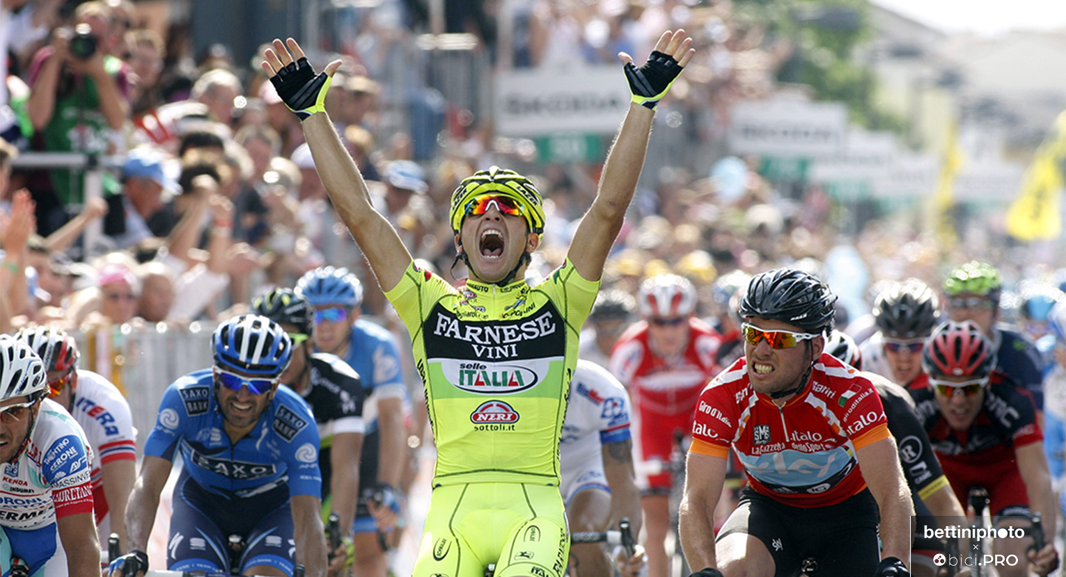 Torna alla memoria lo sguardo inferocito di Cavendish a Vedelago nel 2012 (foto di apertura), battuto in volata dal giovane velocissimo, ma probabilmente troppo vicino all’ammiraglia di Scinto sull’unica salita. Tornano alla memoria le battute sarcastiche di alcuni direttori sportivi sul fatto che il veronese non si allenasse abbastanza e ne fosse riprova il fatto che in salita si staccava sempre. E’ un po’ come se si prendesse Usain Bolt e lo si accusasse di essere poco professionale perché dopo una maratona piena di salite, nei 100 metri non è il più veloce o magari in pista nemmeno ci arriva. Guarda caso, la situazione è andata peggiorando mano a mano che i percorsi venivano induriti e la tappa con arrivo in volata ha perso le connotazioni veloci di un tempo.