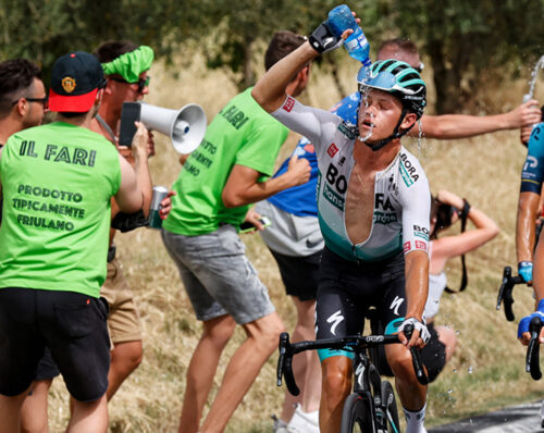 Sarebbe morto pur di non perdere questo sprint. Jai Hindley è partito più lungo di tutti e ha resistito alla rimonta di Bardet e Carapaz, ingobbendosi sul manubrio e lasciando che le gambe si accartocciassero attorno a un rapporto troppo lungo. Per il ragazzo di Perth che da quest’anno corre alla Bora-Hansgrohe c’era in ballo il ritorno alla vita. A un certo tipo di vita, quantomeno. Ultima vittoria ai Laghi di Cancano, Giro d’Italia del 2020: quello di ottobre e dei ragazzini terribili che poi sono spariti. Da lui, appunto, fino a Tao Geoghegan Hart. E ora ha lo stesso sorriso incredulo di allora, anche se nel mezzo se l’è vista brutta.
