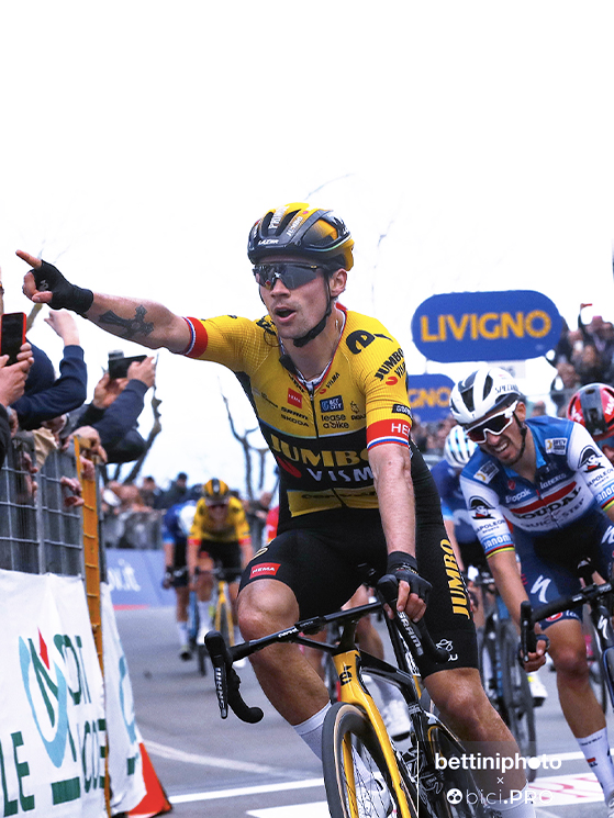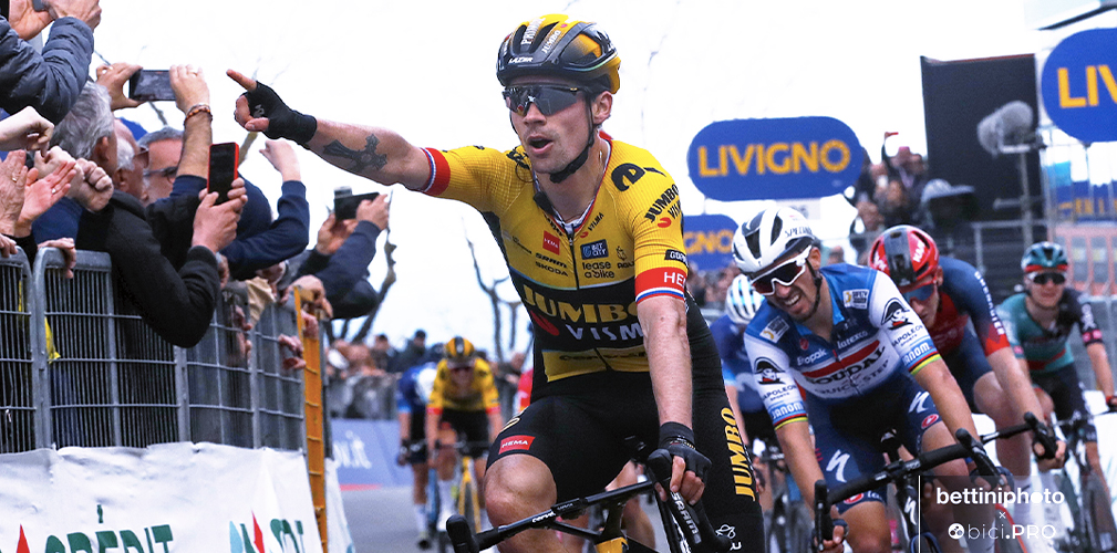 A Tortoreto, che da un lato si affaccia sugli Appennini innevati e dall’altro sul mare, lo sloveno della Jumbo-Visma ha messo tutti in fila. E lo ha fatto con una volata apparentemente facile, con quella scioltezza di quando la gamba è piena e gira il rapporto con naturalezza.