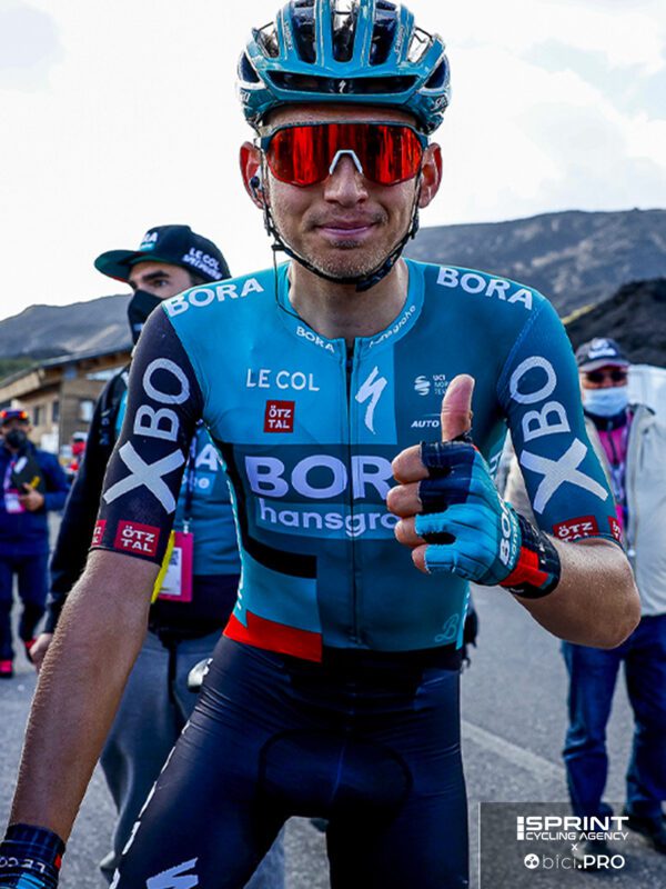 La sua gestione della scalata finale dell’Etna è stata di una lucidità pazzesca, mentre il friulano che lo seguiva sull’ammiraglia della Bora-Hansgrohe, racconta di non aver avuto mai un dubbio sul fatto che il suo corridore avrebbe vinto.