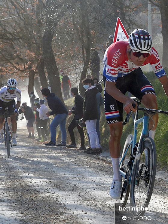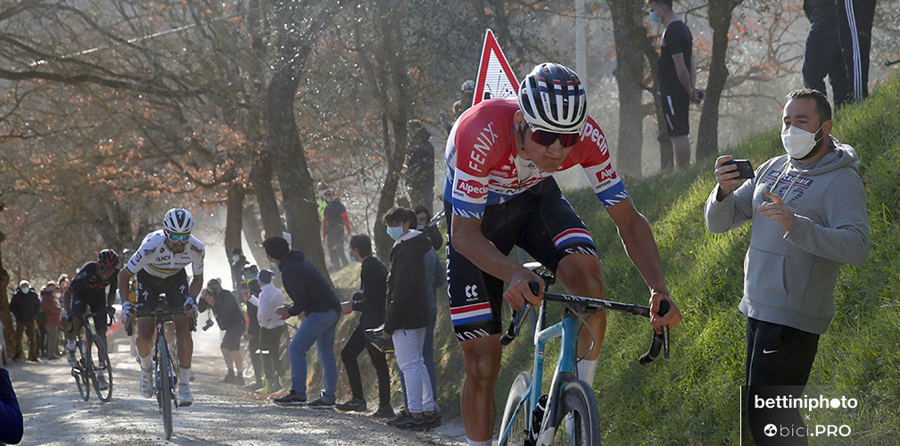 Stavolta ha funzionato tutto bene, non come l’anno scorso in cui aveva pagato l’insicurezza e la poca esperienza. Era venuto a fare lo sceriffo, era tornato a casa con un 15° posto e il pubblico che applaudiva Van Aert. Oltre il danno, la beffa, doveva aver pensato. Per questo forse la Strade Bianche è diventata il suo obiettivo. Non il principale, ma di certo uno di quelli importanti.