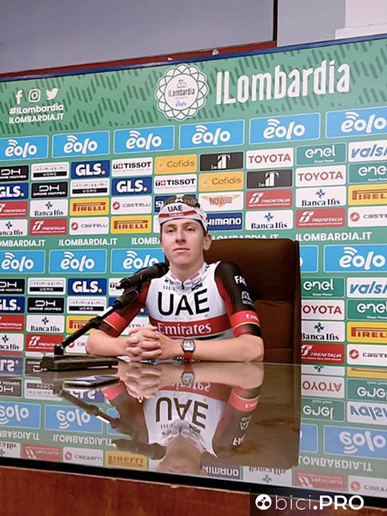 E poi c’è Pogacar. Arriva in conferenza stampa che Como è ormai avvolta dall’ombra delle montagne. Cappellino con la visiera sulla fronte “alla Bartali” e la solita scioltezza nel raccontare.