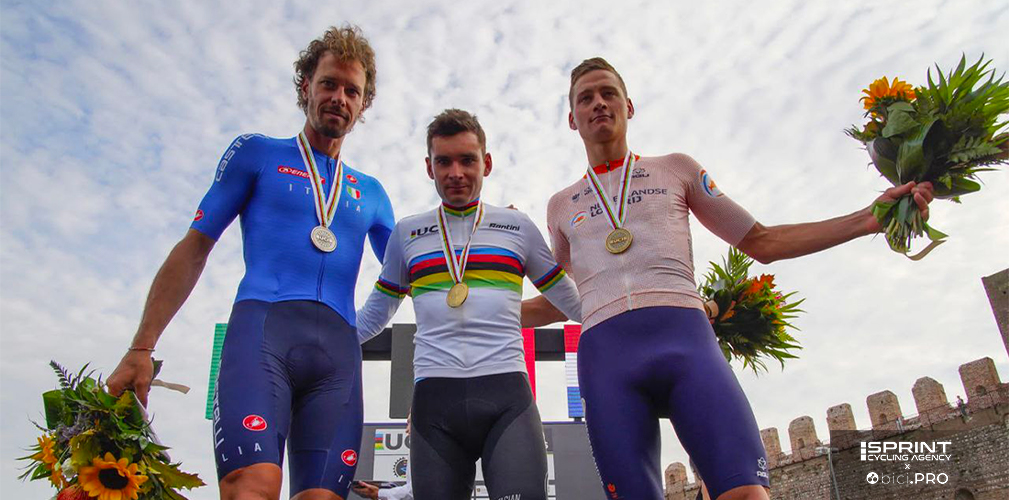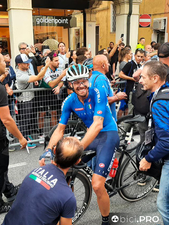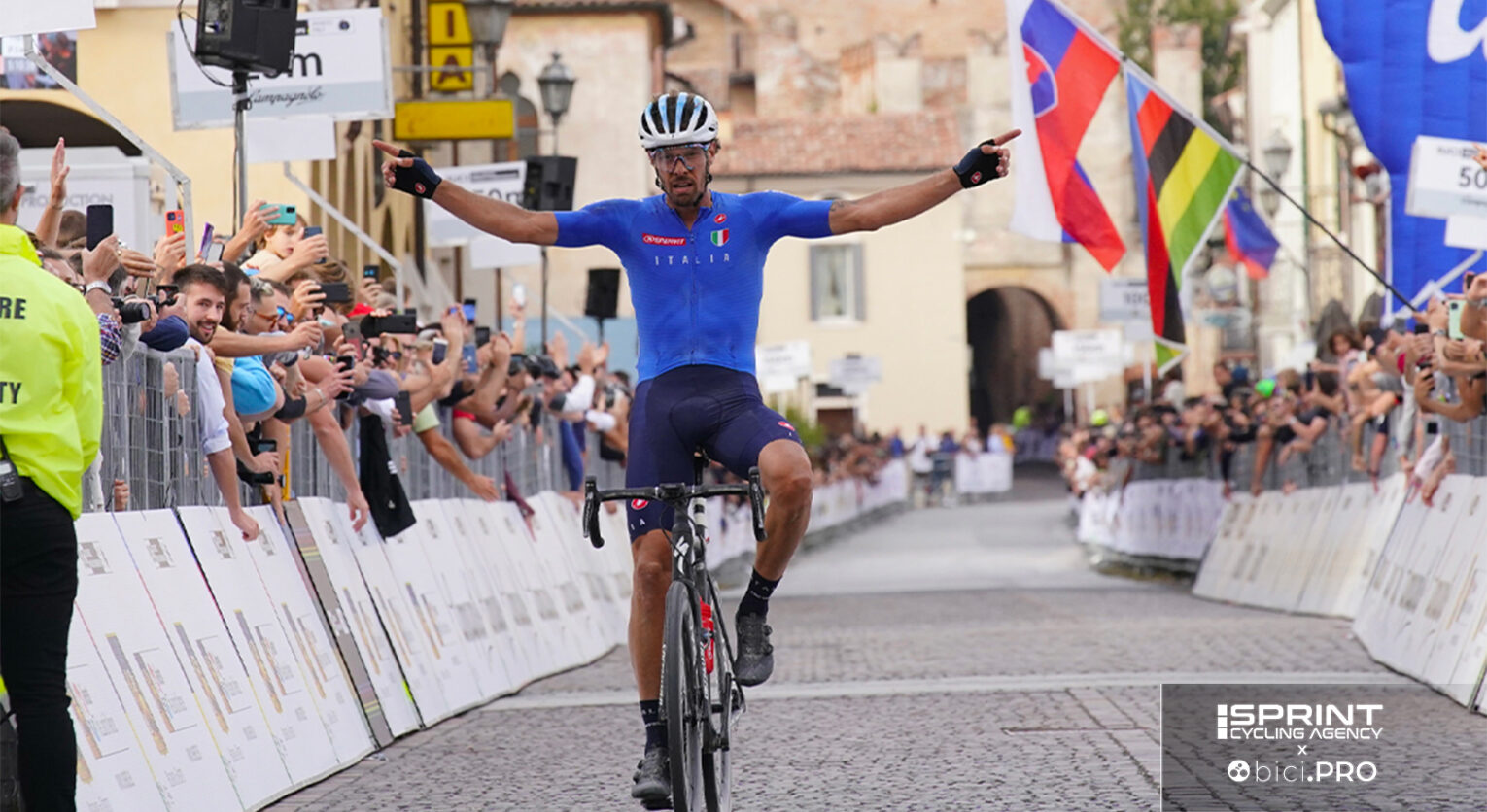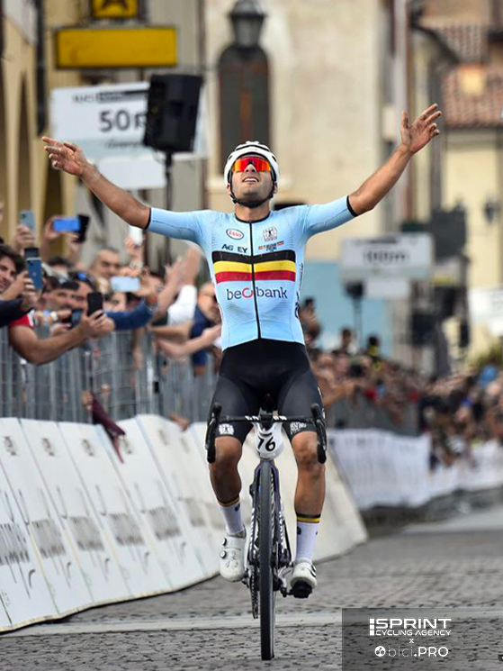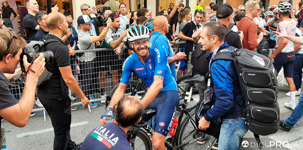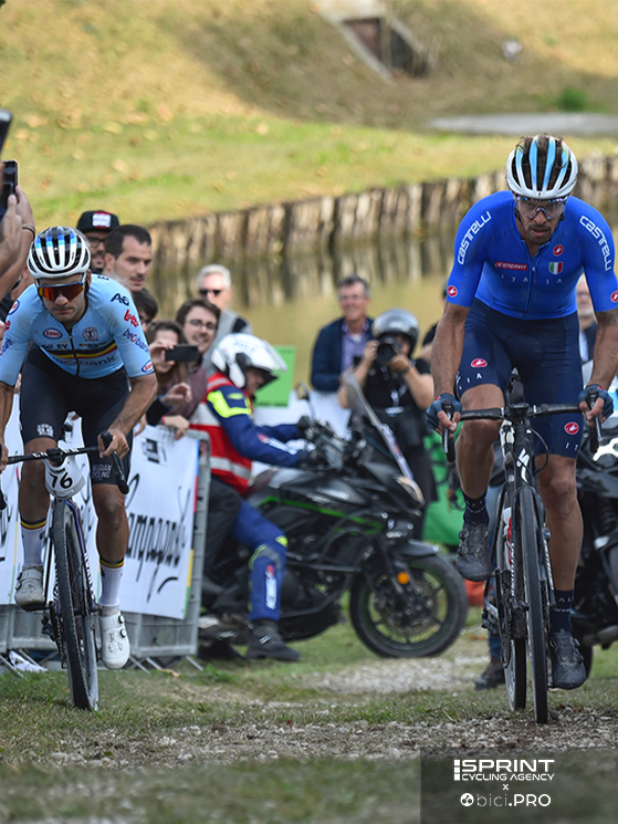 Temperatura perfetta, merito di un autunno gentile, alleggerito anche da un vento fresco che ha accompagnato gli atleti senza penalizzarli da Vicenza a Cittadella. La fuga di Daniel e Gianni è partita dopo appena 40 chilometri e una volta attestatosi il vantaggio sui cinque minuti per il gruppo dietro si è pensato solo alla medaglia di bronzo. Mathieu Van Der Poel, ha provato ad organizzare l’inseguimento, ma la polvere dello sterrato veneto non ha permesso una rincorsa costante e si è dovuto accontentare del bronzo. Il merito è anche della nazionale italiana e di quella belga che hanno tenuto cucito il vantaggio agendo come pacer per il gruppo.