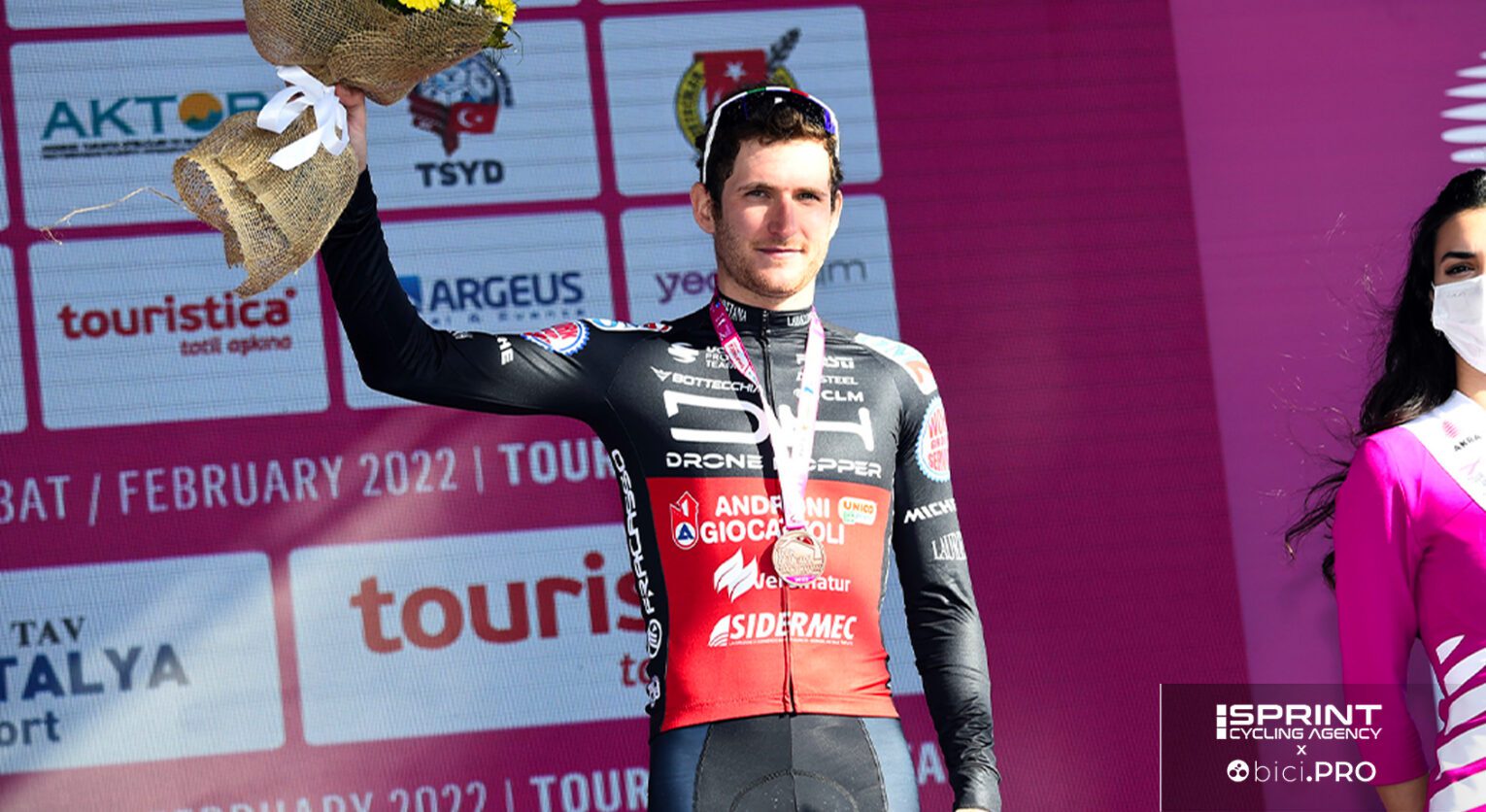Dice che il podio di oggi è una bella emozione, ma quei cinque minuti di attesa sul palco della crono di Torino al Giro d’Italia, neoprofessionista e per giunta primo a scattare, saranno impossibili da dimenticare. La storia di Tagliani è di quelle che ti restano addosso e aspetti il varco giusto per farla uscire. Oggi è il giorno giusto, anche se il terzo posto nella tappa di Antalya potrebbe non giustificare chissà quali slanci. Filippo avrebbe voluto sprintare anche ieri, ma è rimasto chiuso. Oggi invece ha trovato il varco e si è arreso solo a Rajovic e Gibson