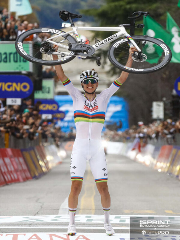 La bici al cielo sulle sponde del lago di Como, a riallacciare il filo con la sua prima vittoria stagionale, quella in Piazza del Campo a Siena. Pogacar arriva in conferenza stampa con una giacca che riporta i colori dell’iride più grande di almeno due taglie. Con Il Lombardia lo sloveno ha concluso la sua stagione, ora ha voglia di andare in vacanza. Lo si capisce dagli occhi scavati dalla fatica dei 58 giorni di corsa disputati e dei quasi 10.000 chilometri messi sotto le ruote. Risponde in fretta alle domande e saluta tutti con la promessa di rivederci nel 2025 con nuovi obiettivi e traguardi da raggiungere.