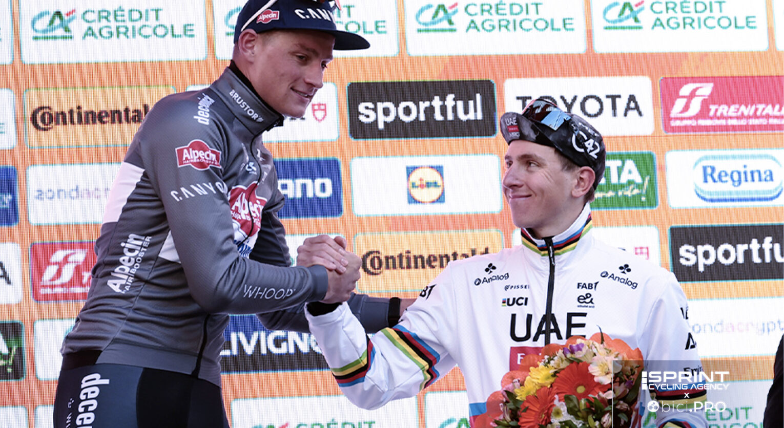 Secondo te non sbaglia neanche la volata? Quando si trova con Van der Poel: partire secco o partire lungo?