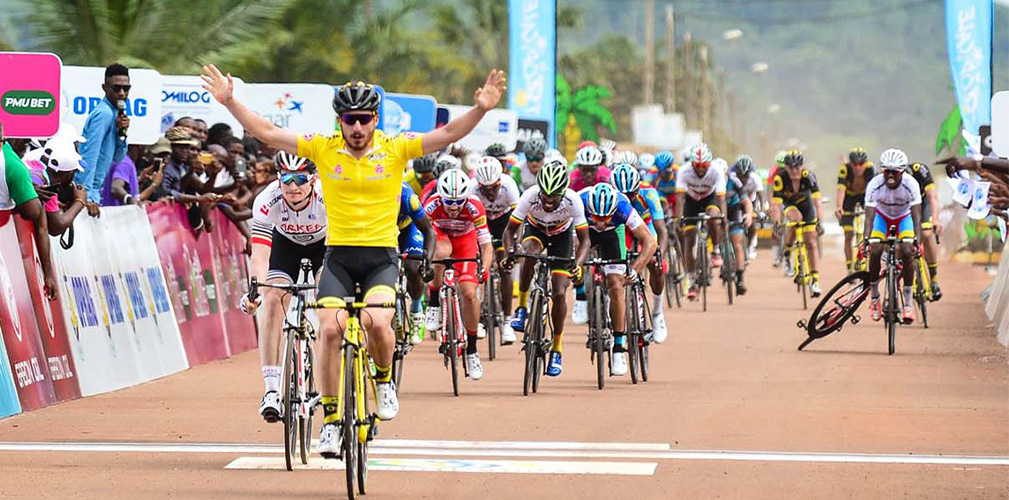 La vittoria alla Tropicale Amissa Bongo del 2019. Dietro c’è anche Girmay (foto G.Demoureaux)