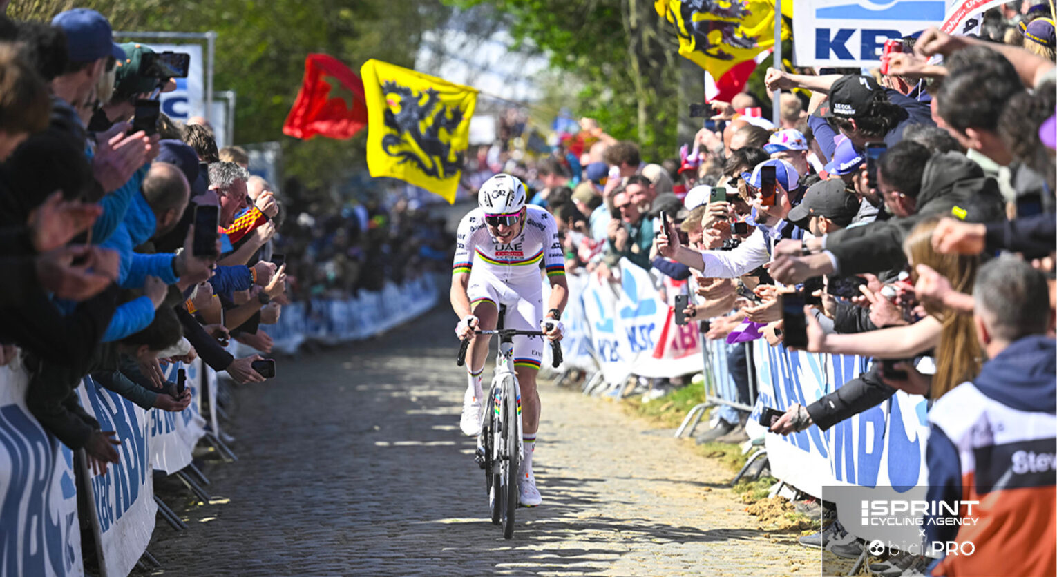 OUDENAARDE (Belgio) – Può sembrare strano come cosa da dire al termine di un Giro delle Fiandre così veloce, il più veloce della storia, eppure Tadej Pogacar ha dovuto sudarsi la vittoria come raramente gli è successo in precedenza. Il campione del mondo non si è potuto accontentare di un solo scatto, ma ha dovuto piazzarne un quantitativo indefinito (cinque quelli davvero incisivi) prima di poter infine staccare tutti i contendenti, che raramente negli ultimi anni sono stati così forti. Basti pensare che a un certo punto al comando del Fiandre si sono ritrovati tre campioni del mondo: Pogacar, Pedersen e Van der Poel, finiti così peraltro sul podio. Van Aert al quarto posto non ha reso certo meno nobile l’ordine di arrivo e anzi si è scrollato dalle spalle come forfora un bel mucchio di negatività. Un Fiandre così bello lo ricorderemo a lungo.
