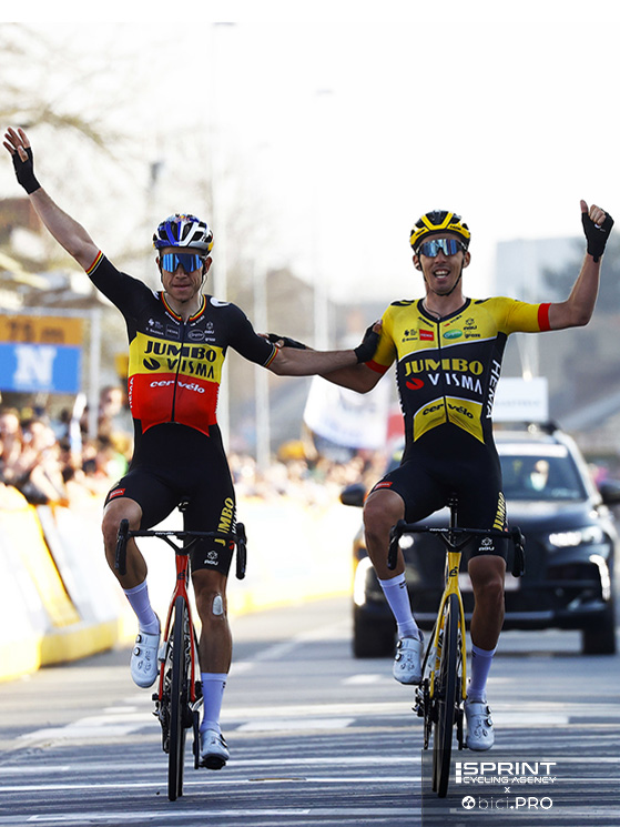 Van Aert ha tagliato il traguardo abbracciato al compagno Laporte, con cui ha diviso gli ultimi chilometri all’attacco. Van der Poel ha schiodato la concorrenza con una volata di rabbia. La sua ultima vittoria risaliva al 12 settembre, nella Antwerp Port Epic.