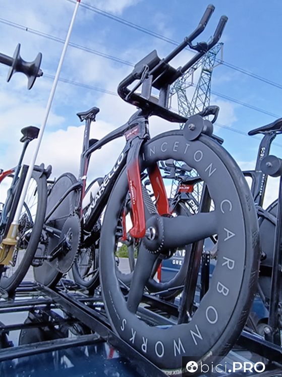 Stamattina c’era qualche incertezza sulla scelta della ruota anteriore in casa Soudal-Quick Step, si era persino ipotizzato di usare la Rapid da 64 millimetri per i rilanci dentro Cesena. E anche perché consentiva di montare una copertura ideale per il bagnato. Poi Remco ha optato per la ruota da 100 millimetri. I suoi rivali avevano profili leggermente più snelli.
