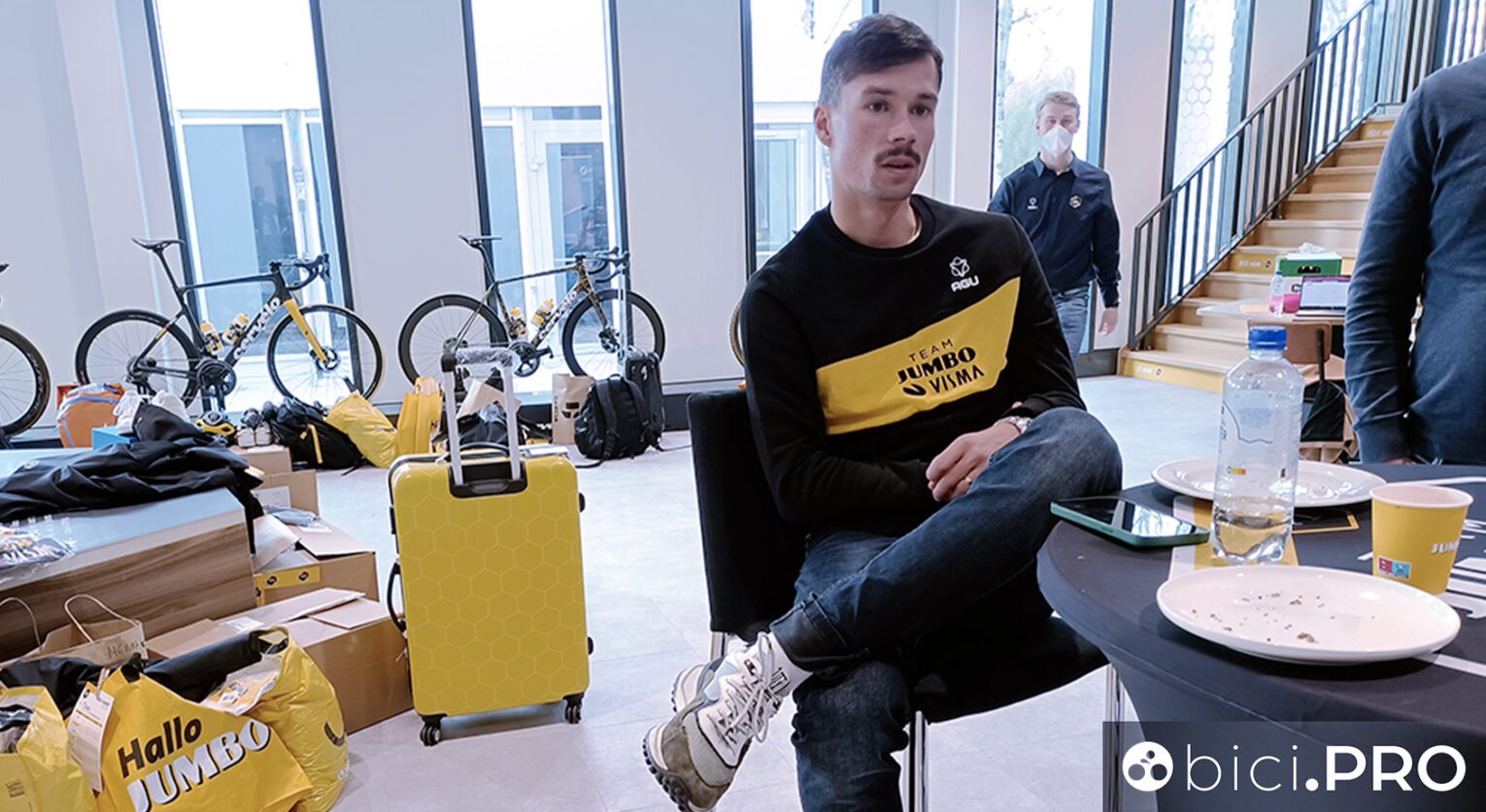 S-Hertogenbosch, Service course della Jumbo-Visma. Primoz Roglic si aggira nelle varie sale della sede giallonera come se fosse di casa, ma di fatto lo è. Lo sloveno fa parte di questo team dal 2016. E ne è una colonna portante: è stato lui a portare le prime grandi vittorie.