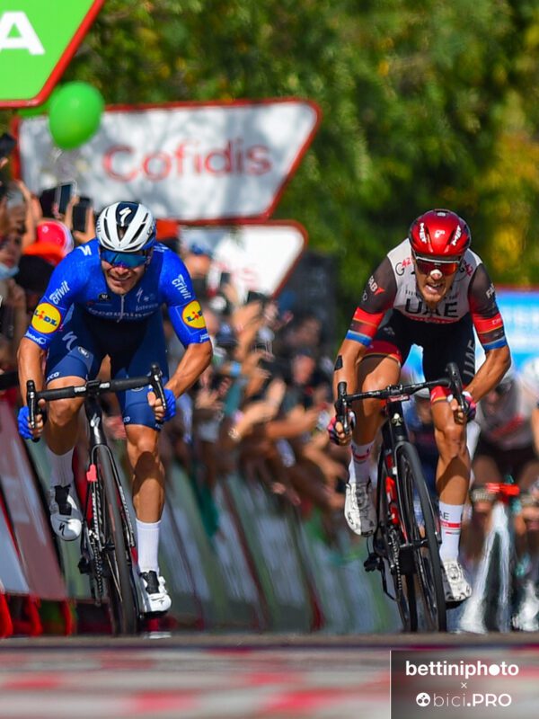 Anche quando deve esserci una volata (e questa c’è) nulla è scontato alla Vuelta. La tappa 13 arrivava a Villanueva de la Serena. Era la frazione più lunga con i suoi quasi 204 chilometri. Non era difficile altimetricamente, ma come si dice: la corsa la fanno i corridori. Velocità elevata, un po’ di vento e 13 giorni di gare nelle gambe iniziano ad essere un bel po’ per rendere il finale incerto. Se a tutto ciò ci si mette un arrivo tecnico, con rotonde, curve, la Deceuninck – Quick Step in gara e Davide Bramati in ammiraglia lo show è assicurato!