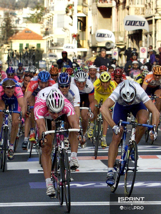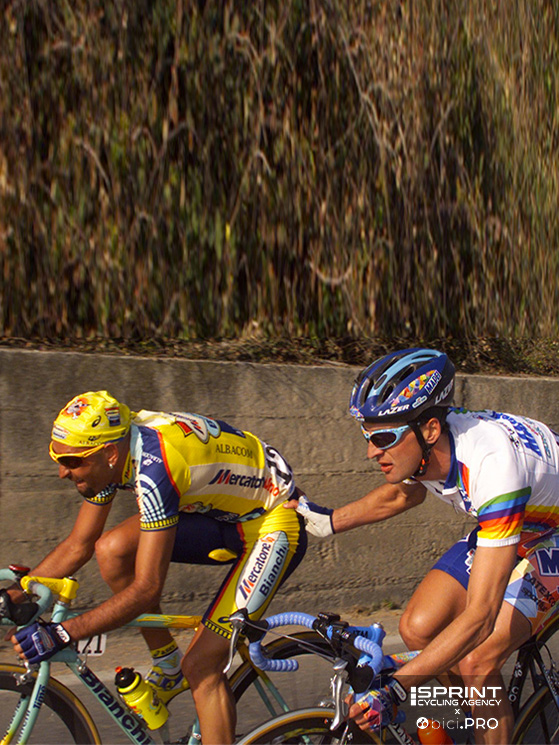 Era il 1999 e sia Marco sia io si puntava a vincere la Sanremo. Eravamo gli unici che volevano la corsa dura. Io sapevo che il Panta sarebbe partito sulla Cipressa e infatti partì. Mi aspettavo anche un po’ di movimento da parte di altri. Pensai: «Cavoli, va via il Panta, qualcuno si muoverà». Invece alla fine non si mosse nessuno. Così andai io e lo agganciai. Facemmo una bella salita, ma poi arrivati alla pianura in fondo alla discesa si formò quel gruppetto in cui non collaborava praticamente nessuno. Perciò ci si rialzò e finì lì.