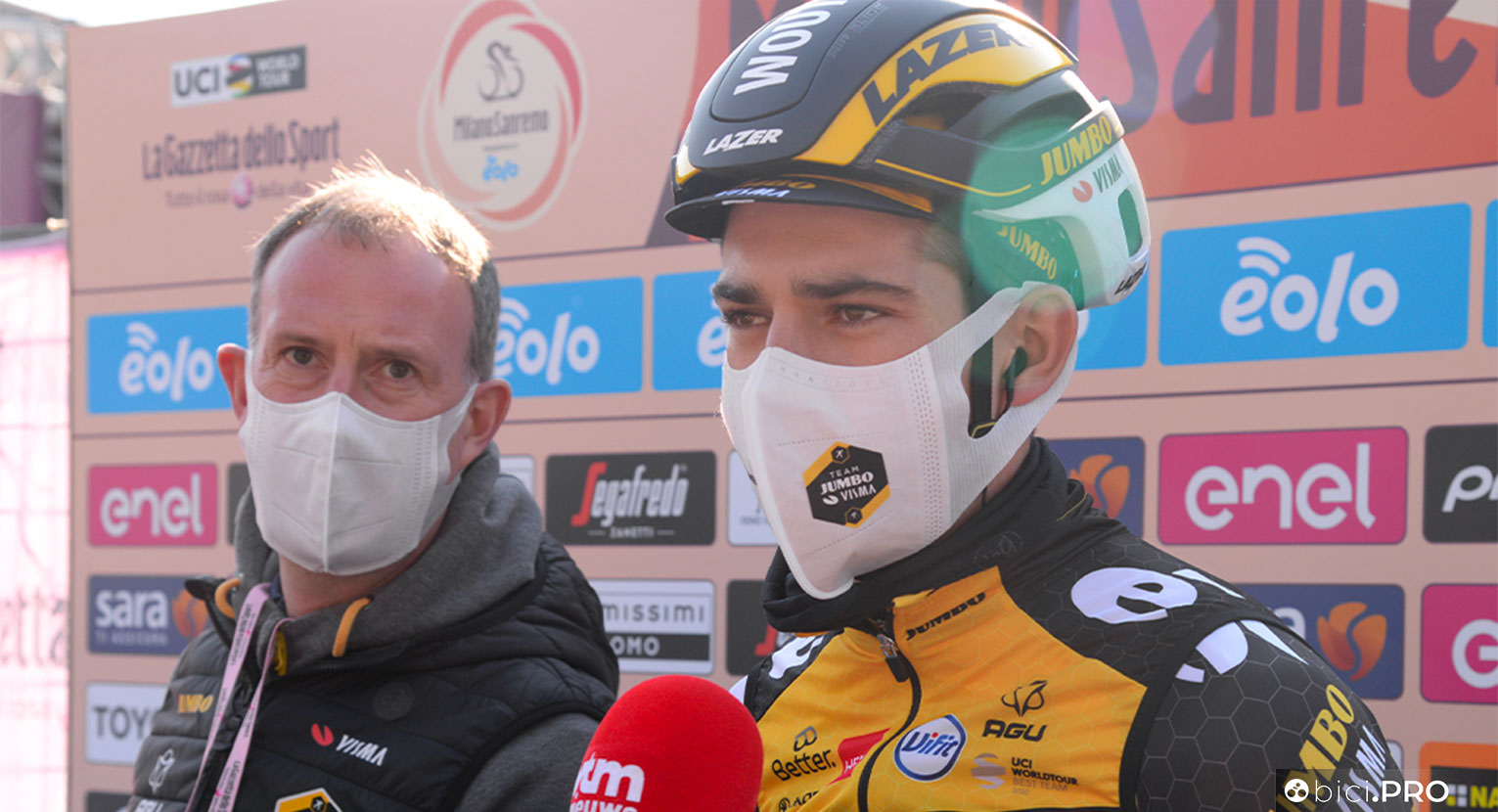 La Milano-Sanremo è in partenza. I corridori sfilano davanti ai giornalisti, mentre Milano è congelata in una zona rossa da capire, dato che ieri sera davanti a ogni bar sostavano capannelli di spritz, con i vigili che passavano senza nulla dire. Qualche tifoso si affaccia e in attesa di togliere le mascherine, va anche bene così. Si corre e tanto basta, ma la frase di Van der Poel si presta a un bel gioco, anche perché dal giorno della Strade Bianche di lui hanno tutti davvero paura. Tutti lo aspettano e hanno paura di lui e lui intanto pensa a un piano B. Lo scenario perfetto per una grande corsa. Il tempo è buono, le previsioni per fortuna sono cambiate.