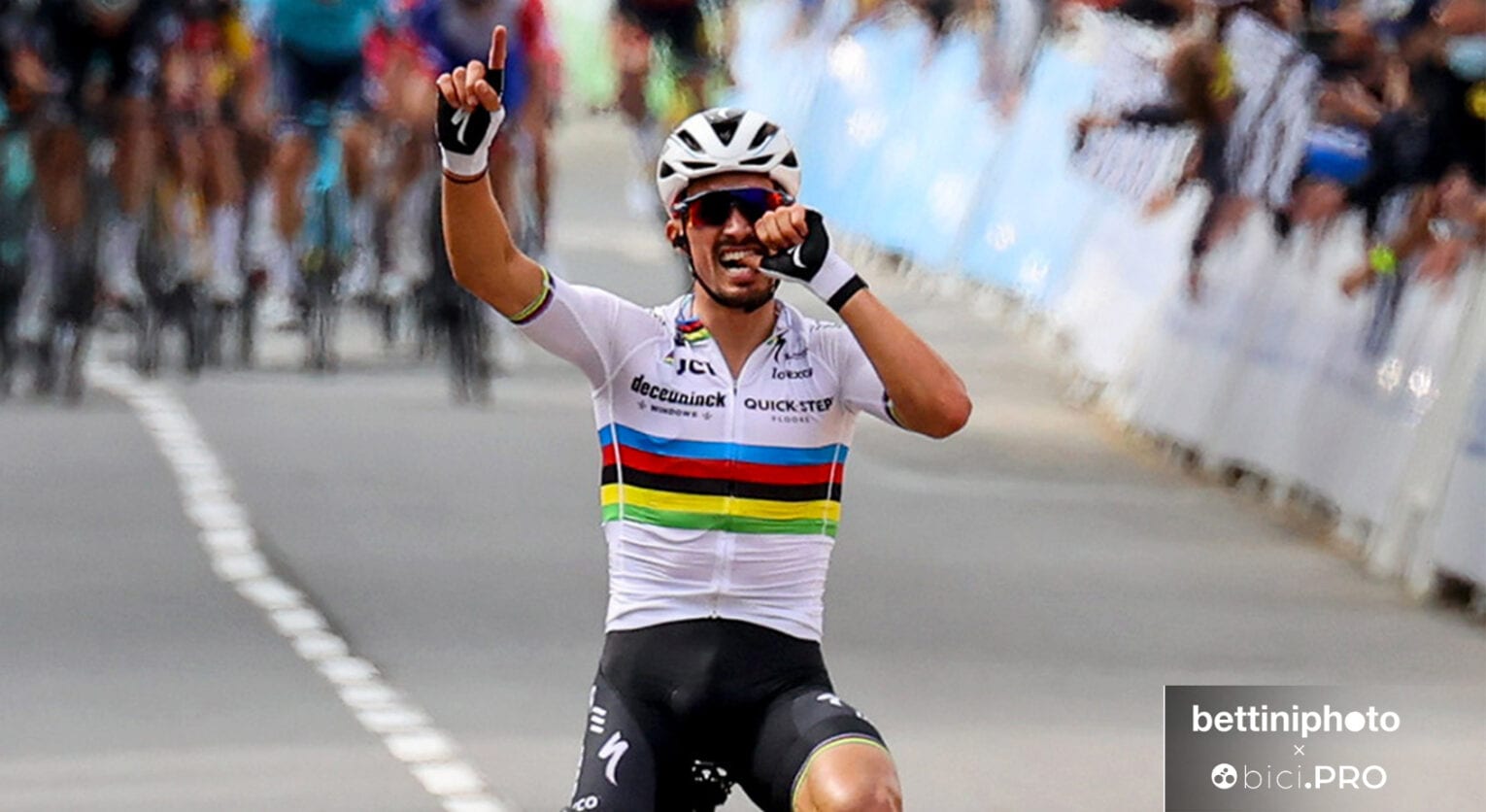 Passato lo shock della caduta, la salita di Fosse aux Loups ha fatto ciò che ci si aspettava. E mentre tutti invocavano l’attacco Van der Poel e Van Aert, Julian Alaphilippe ha fatto vedere che al Giro di Svizzera non aveva ancora la gamba che voleva. Il campione del mondo ha attaccato sulle pendenze maggiori, lasciando sul posto gli avversari. Pogacar e Roglic hanno provato a inseguirlo, ma il francese, che ha percorso gli ultimi 500 metri della salita a 42,6 km/h, ha potuto assaporare la vittoria sulla linea. E ha preso la maglia gialla.