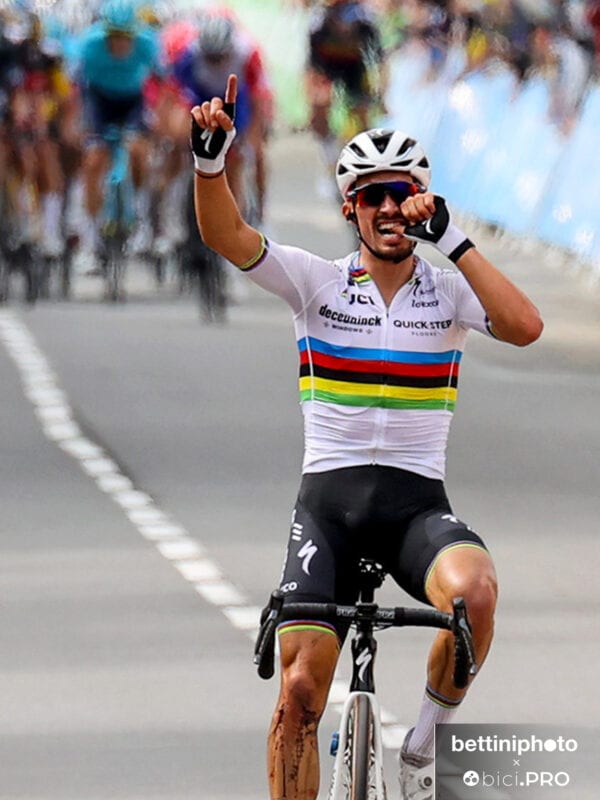 «Questa è una vittoria così speciale – dice Alaphilippe, con la gamba destra sporca di sangue e grasso – che non riesco a trovare le parole per dire come mi sento. Prima di tutto, voglio dire un grande grazie a tutti i miei compagni per essersi presi cura di me oggi e per aver mostrato uno straordinario spirito di squadra. Sono stato coinvolto in quella prima grande caduta, ma con il loro aiuto sono tornato in gruppo. Hanno creduto in me, hanno lavorato sodo tutto il giorno e sono felice di poterli ripagare»
