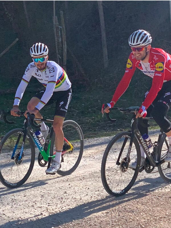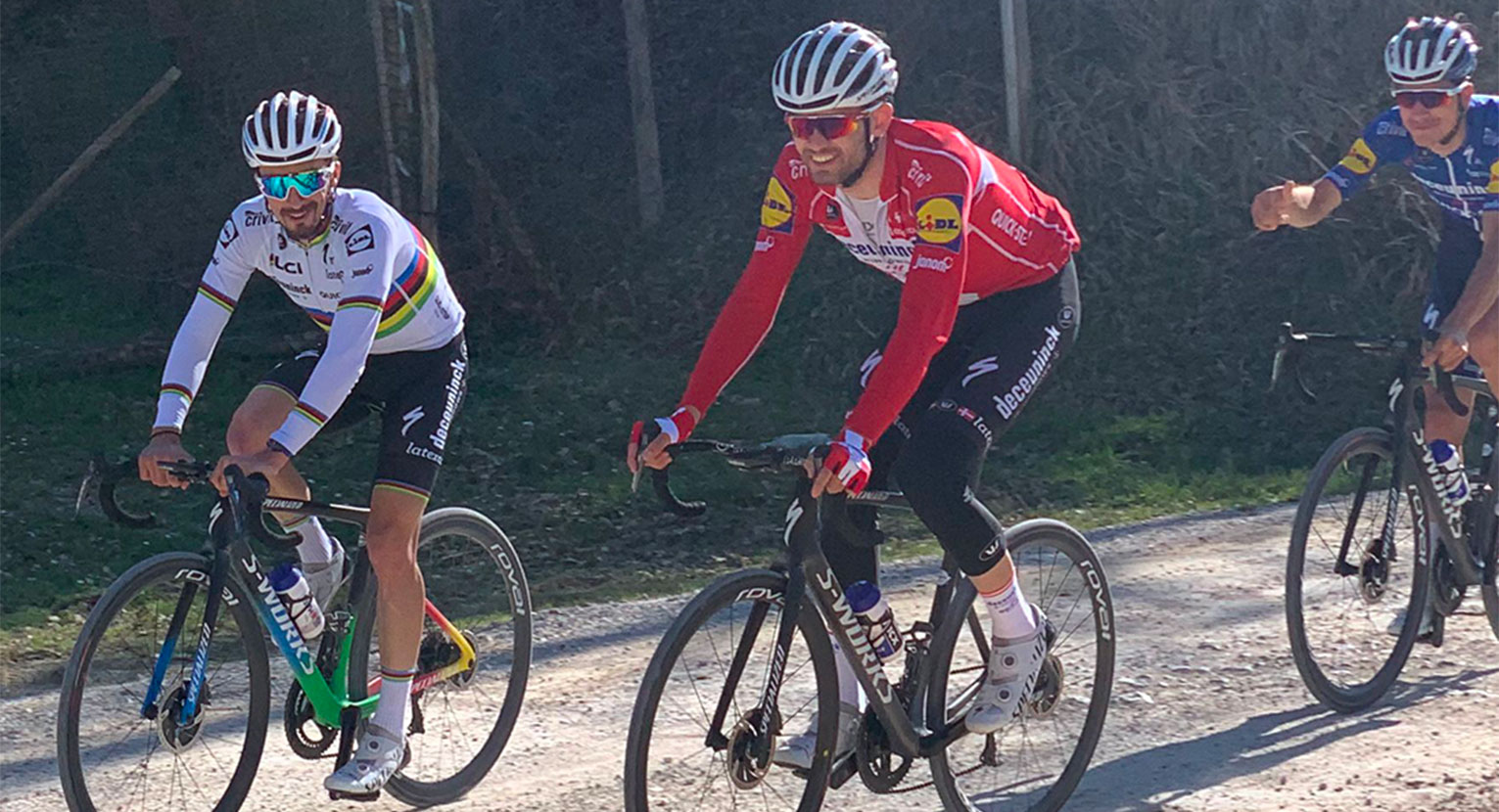 Avviato con grande emozione verso la paternità e con la magia iridata attorno al busto, Julian Alaphilippe ieri ha condotto la Deceunuinck Quick Step sul tracciato della Strade Bianche, percorrendo gli ultimi 50 chilometri, anche con l’intento di provare le gomme per sabato. E dato che le previsioni danno pioggia, i ragazzi della Deceuninck-Quick Step si sono soffermati su valutazioni supplementari in questo senso.