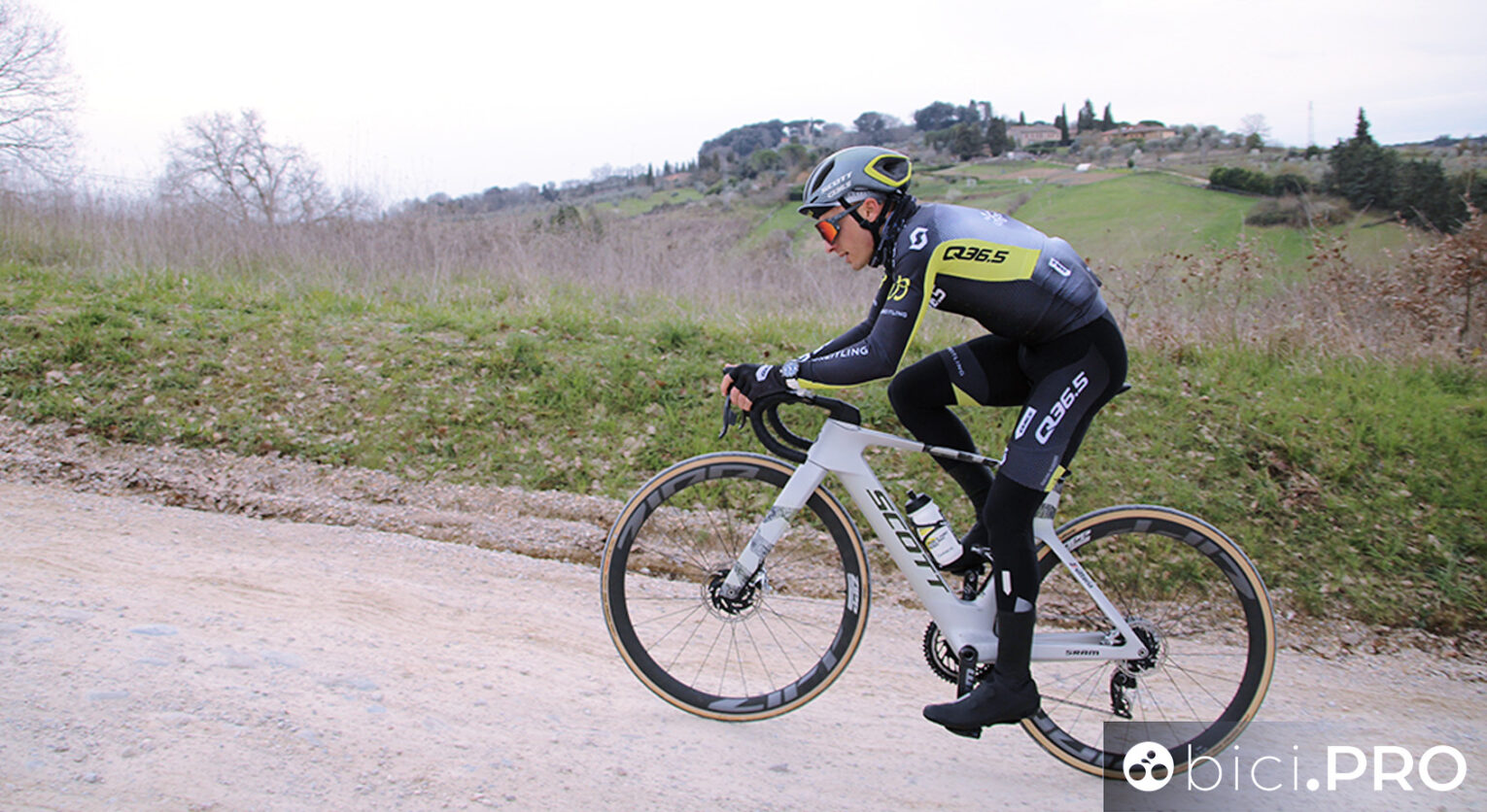 Cerco di fare i tratti di sterrato con un certo impegno e una buona velocità per trovare il feeling con i materiali, soprattutto le gomme. Per capire il comportamento della bici e come guidare. E poi perché ogni anno comunque lo sterrato cambia un po’.