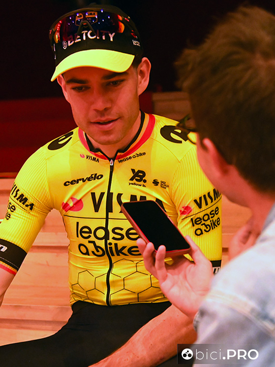 Van Aert è uno dei più gettonati e dice che è una vergogna debuttare al Giro soltanto quest’anno. Pare che negli ultimi giorni non sia stato benissimo, ma la pressione dei media lo vorrebbe dichiarare la prima maglia rosa. Lui non abbocca e sorride, cedendo volentieri il posto a Primoz Roglic con cui ha condiviso trionfi, cadute e risalite.