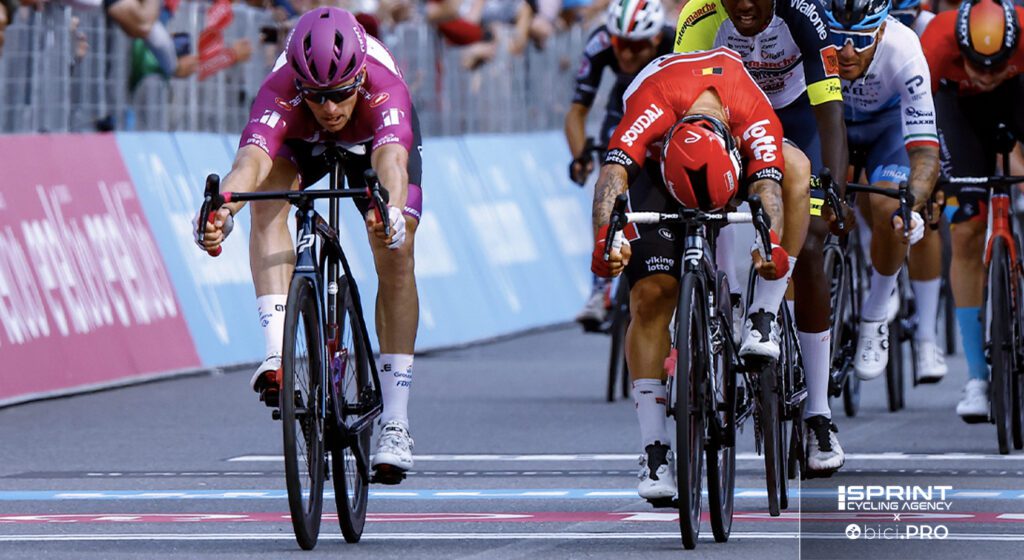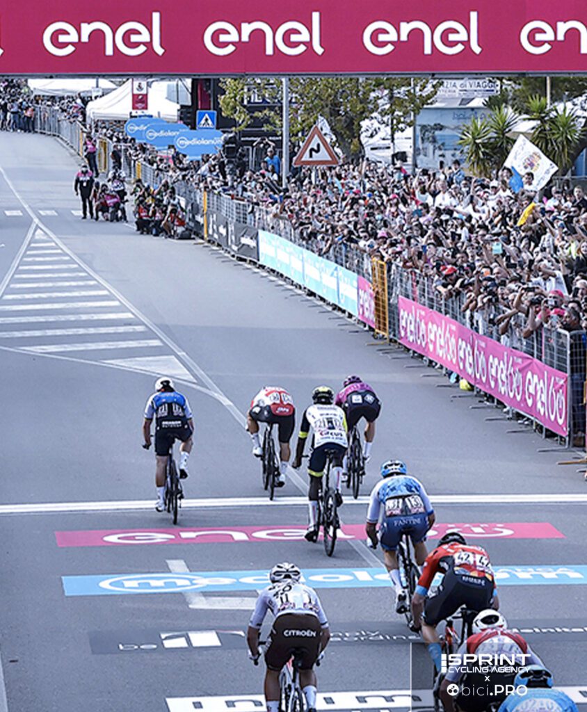 Un millimetro separa i due sprinter. I 196 chilometri della tappa sono racchiusi tutti lì. E se la Palmi-Scalea non resterà negli annali per la sua verve, di certo resterà nella memoria di Arnaud Demare e Jacopo Guarnieri. Il brivido è tutto lì.