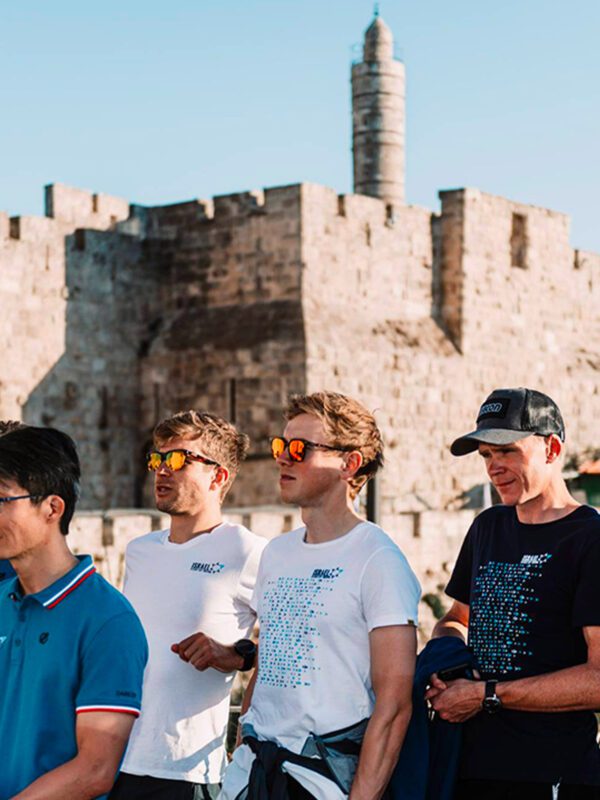 Durante il ritiro, poche uscite su strada con sponsor e tifosi. Si intravede Nizzolo Froome e Woods a spazzo nel mercato di Gerusalemme: luogo magico di profumi e colori Il deserto è una dimensione nuova per i corridori europei Non poteva mancare la visita al nuovo velodromo di Tel Aviv: froome tiene banco In mountain bike, su piste che un tempo erano percorse dai pastori beduini, oggi confinati in piccoli campi Anche il kayak fra le attività alternative proposte durante il training camp