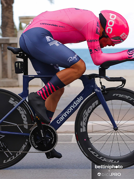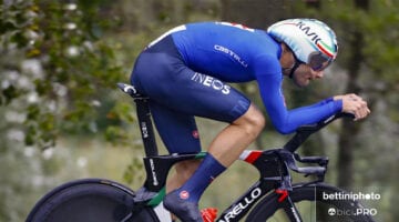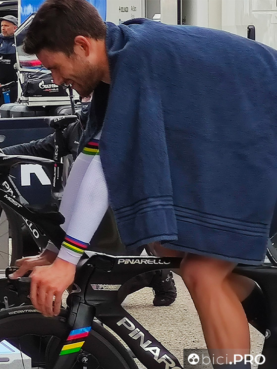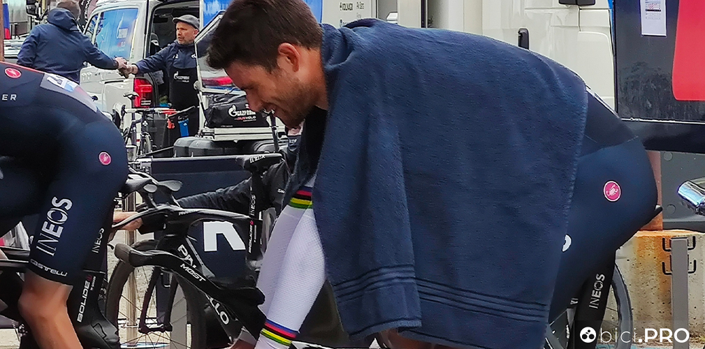 Per amor di bandiera, iniziamo il nostro racconto da Ganna, che sui rulli dopo l’arrivo è parso davvero stremato, riparato con una coperta mentre girava le gambe in cerca di sollievo.