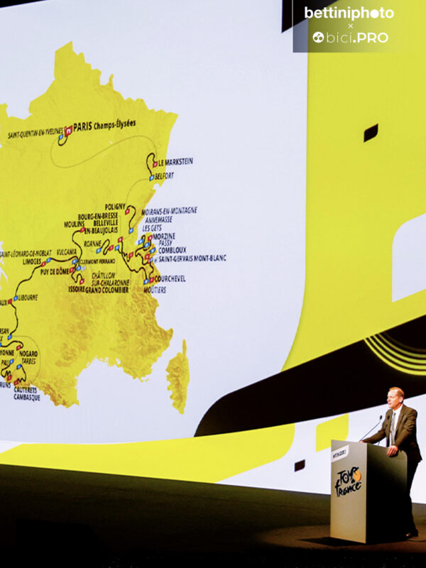 Christian Prudhomme (nella foto di apertura), il direttore del Tour, è sembrato più orgoglioso che mai. Si va in scena dal 1° al 23 luglio: 21 tappe, 3.404 chilometri, otto frazioni di montagna, quattro arrivi salita. E ancora: otto tappe di pianura, quattro tappe ondulate e una sola cronometro, tra l’altro abbastanza breve. Solo due frazioni al di sopra dei 200 chilometri.