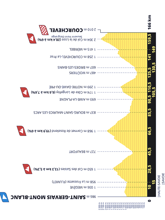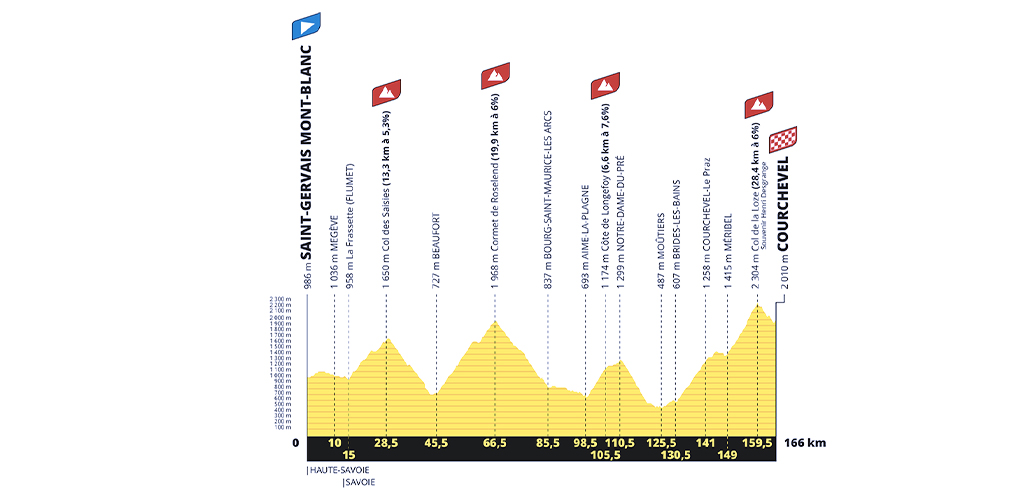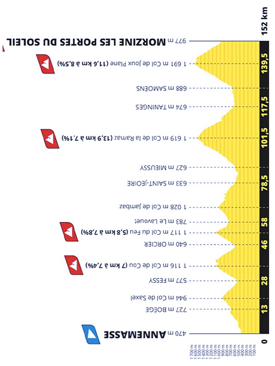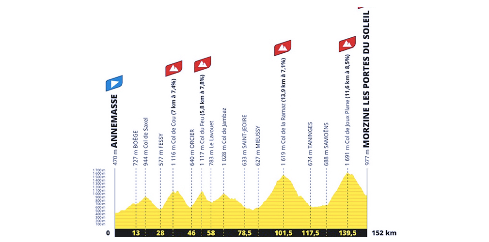 S’inizia con l’arrivo in cima al Col du Grand Colombier, tra l’altro nel giorno della festa nazionale. Poi è la volta di Morzine con il classico Col de Joux Plane prima dell’arrivo. Salita difficile e discesa difficilissima (se da fare a tutta per scappare o chiudere).