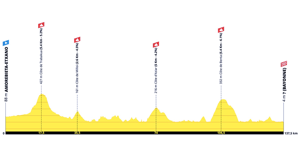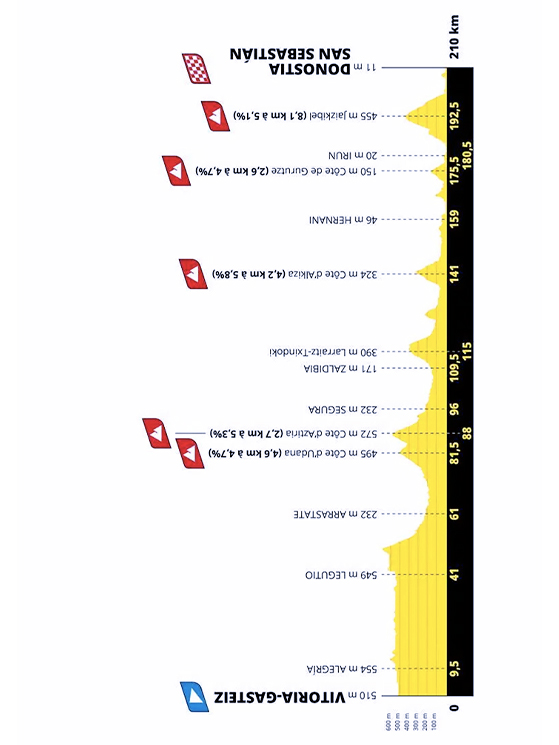 Così come da pugili è la prima settimana. La seconda tappa, per esempio, arriva a San Sebastian ed è una (quasi) fedele replica dell’omonima classica. Anche la terza tappa è un “grido” di appena 137 chilometri con 4 Gpm, non duri okay, ma sono pur sempre 4 scalate. E tutti hanno ancora gambe fresche.