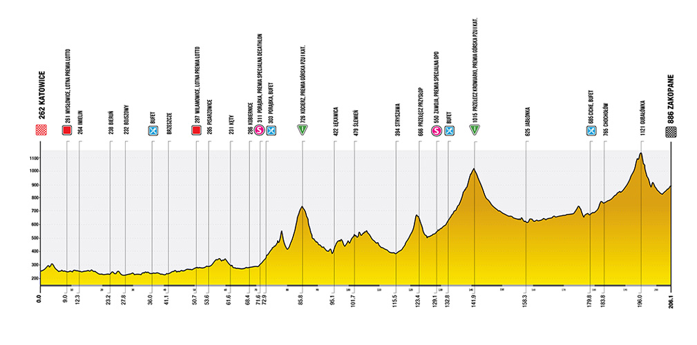 Già alla seconda tappa con l’arrivo in salita a Karpacz si vedrà chi punta alla vittoria finale. In molti usciranno allo scoperto. Per me però il giorno successivo sarà quello più impegnativo. Il profilo di Walbrzych prevede 3.540 metri di dislivello in meno di 160 chilometri. Davanti arriveranno tutti i favoriti. Questa tappa fa il paio con la sesta. Al sabato ci saranno sei GPM di prima categoria e l’arrivo in quota a Bukowina Tatrzanska, dove vinse Evenepoel nel 2020 ipotecando il successo finale. In ogni caso non bisogna sottovalutare nemmeno la quinta tappa, quella che arriva a Zakopane, in cui Vingegaard trionfò nel 2019. Si va oltre i 200 chilometri e quasi a 3.000 metri di dislivello. Sembra fatta su misura per gli attaccanti, ma attenzione a qualche azione degli uomini di classifica.