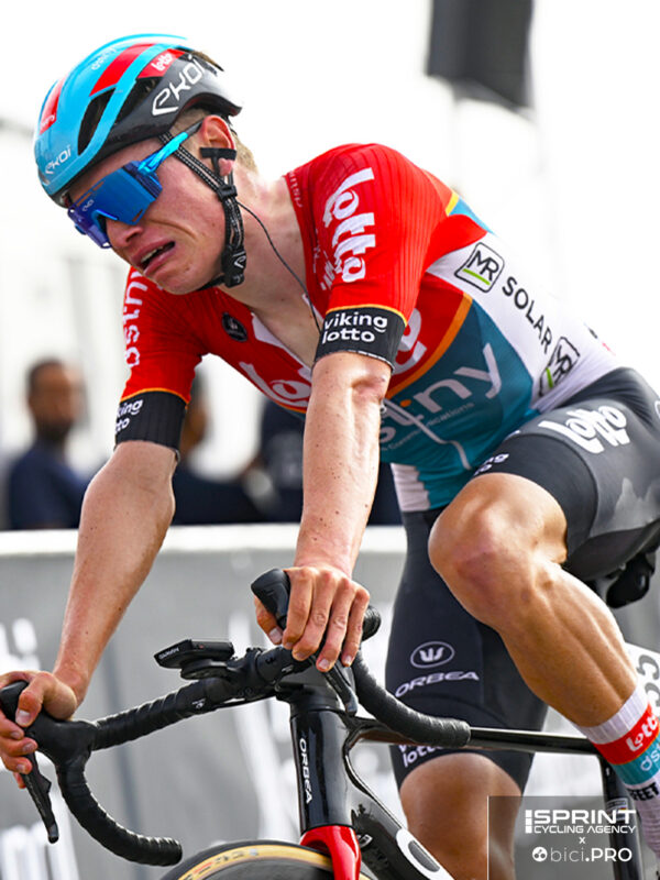 Lennert Van Eetvelt, alto 1,76 per 63 chili di peso forma, compirà 23 anni il prossimo giugno ed è noto in Italia per aver vinto la tappa della Fauniera al Giro d’Italia U23 del 2022, chiudendo al secondo posto finale dietro Leo Hayter. Quello stesso anno si portò a casa la Corsa della Pace, mentre nella prima stagione da professionista ha vinto l’Alpes Isere Tour e una tappa al Sibiu Cycling Tour. Alla Vuelta, primo grande Giro a 22 anni, è partito in sordina per qualche malanno, ma ha ottenuto un terzo posto in montagna nel finale della gara.