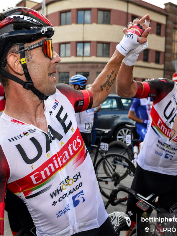 Ma torniamo sul molo Dogana, battuto da un traversone che ha l’unico merito di portar via nuvoloni grigio-piombo, dove un corridore sta rispondendo alle domande di una giornalista Rai prima di salire sul palco della presentazione assieme ai compagni della Uae Emirates. Il suo nome è Diego Ulissi e alla fine della giornata la giornalista scoprirà di aver intervistato il vincitore della prima tappa. Un successo squillante, forse tardivo pensando a quelle maglie azzurre in partenza per Tokyo che strappano gli applausi più convinti.