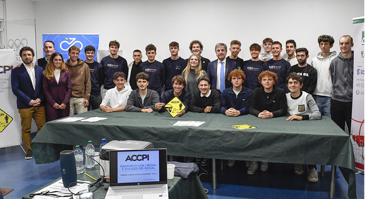 Milano ha ospitato nei giorni scorsi un corso accelerato per illustrare ai neoprofessionisti italiani che cosa li aspetta. L’iniziativa è ormai un appuntamento tradizionale che coinvolge tutte le parti principali del movimento nazionale, dalla Federazione alla Lega. Quest’anno l’evento allestito al Palazzo del Coni dall’ACCPI ha coinvolto un numero maggiore di ragazzi rispetto al solito, ben 22 new entry grazie anche al passaggio fra le Professional dell’MBH Bank. Con loro anche la neopro Matilde Vitillo, approdata alla LIV AlUla Jayco, mentre erano assenti Francesca Pellegrini (Uno-X Mobility) e Federica Venturelli (UAE Team ADQ).