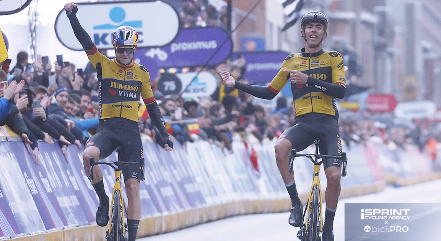 Uno-due. Wout Van Aert, Christophe Laporte. E’ bastata una sgasata, apparentemente neanche mostruosa sul Kemmelberg e i due Jumbo-Visma hanno salutato tutti. La Gand-Wevelegem di fatto si è decisa a poco più di 50 chilometri dall’arrivo.