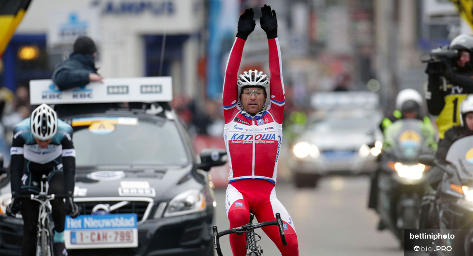 Solo quattro italiani in 76 anni di storia dell’Omloop Het Nieuwsblad hanno alzato le braccia sul traguardo: Ballerini nel 1995, Bartoli nel 2001, Pozzato nel 2007 e Paolini nel 2013. E’ evidente che non si tratti di una corsa banale, dato che fra gli altri vincitori ci sono tutti i mostri delle sfide del Nord. Il percorso della prossima edizione, che si correrà sabato prossimo, è impossibile da vedere sul sito della corsa perché per impedire ai tifosi di seguirla non viene pubblicato, ma ricalca quello di un piccolo Fiandre. Lo scorso anno si corse per 200 chilometri da Gand a Ninove e vinse Jesper Stuyven. Ma come andò nel 2013 quando Paolini fu l’ultimo italiano a vincere?