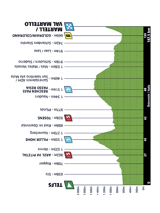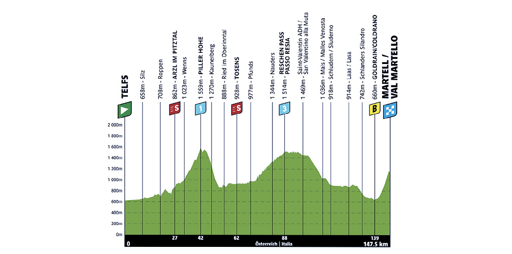 Esatto, ma è una salita vera, perché parliamo di una scalata di 8 chilometri con tratti anche al 10 per cento (pendenza media 7,5 per cento, ndr). Però se guardo il complesso della frazione, non è impossibile. Il Passo Resia dal versante austriaco non è affatto duro e poi è subito in partenza. Però l’arrivo della Val Martello resta un bell’arrivo in salita.