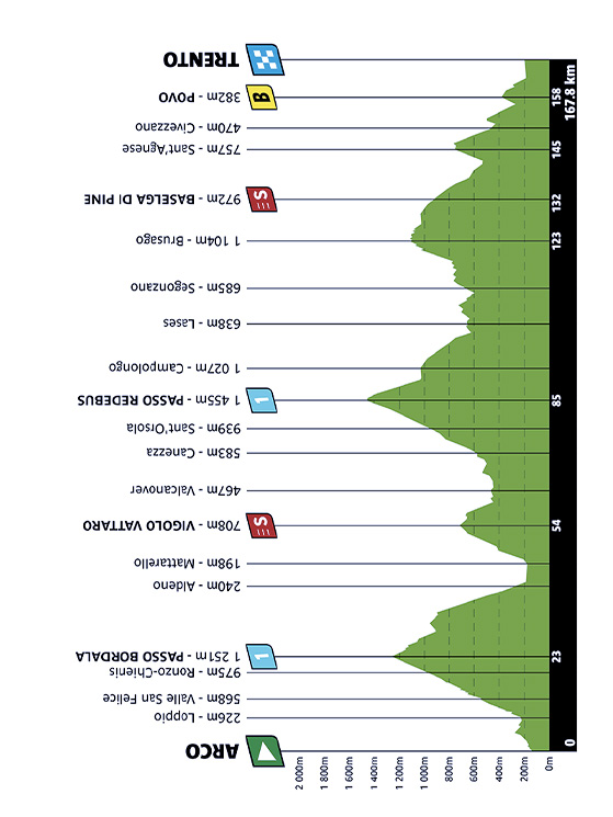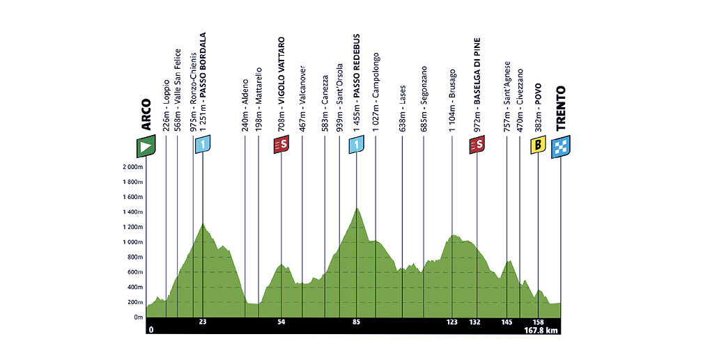 Vale un po’ il discorso di prima verso Arco, però c’è il Redebus, che invece è lungo e impegnativo e nel finale diventa duro, con un chilometro al 10-12 per cento. Anche questa non è una tappa dove solo i più forti possono fare la corsa. Il finale è ondulato e veloce, tende a scendere. Per questo dico che la seconda tappa è quella che potrebbe davvero decidere la classifica. Anche se quella di Bolzano…