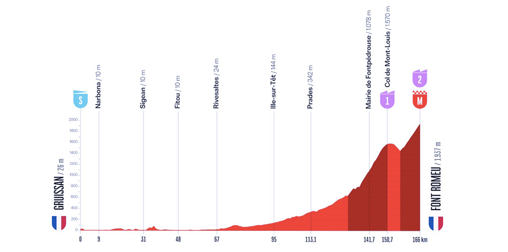 La prima tappa è quindi una cronometro di 9 chilometri nel Principato, in pratica sulle strade del GP di Formula 1. Già qui qualche distacco potrebbe esserci. Il giorno dopo va in scena la frazione più lunga, la Monaco-Manosque di 215 chilometri, mentre quello successivo propone già il primo arrivo in quota, a Font Romeu. Nulla di impossibile, tuttavia si sfiorano già i 2.000 metri di altitudine.