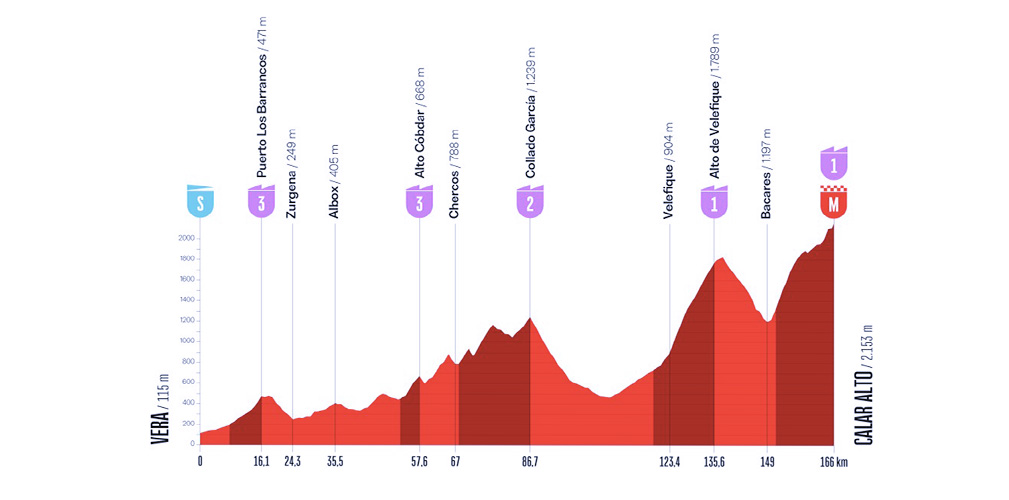 Calar Alto (lungo più di 33 chilometri), preceduto dal Velefique, potrà essere un primo vero, grosso giudice di questa Vuelta. Due giorni dopo, sulla Sierra de La Pandera, altro arrivo in quota, molte cose in più si sapranno. Siamo oltre metà Vuelta e chi ha gambe si farà vedere.