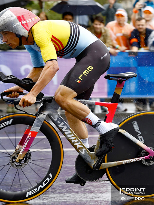 Specialized S-Works Shiv, una taglia xs per Remco Evenepoel, medaglia d’oro alle Olimpiadi di Parigi 2024. Il modello è il medesimo di sempre, quello utilizzato anche nelle corse a tappe e per il mondiale, ma i dettagli e le variabili fanno la differenza.
