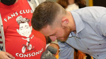 Simone Consonni riceve l’abbraccio di Brembate di Sopra
