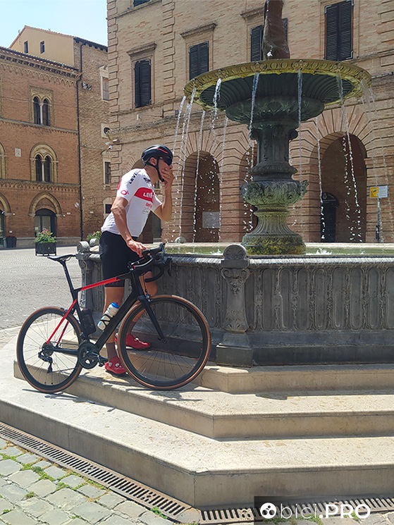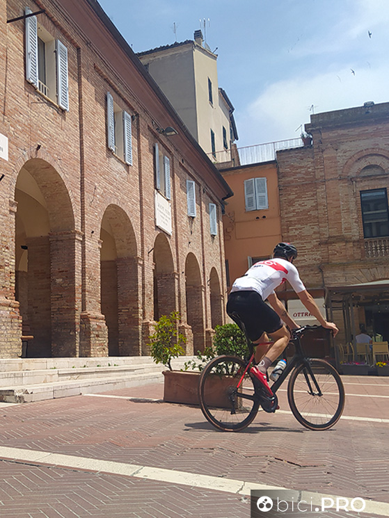Scendiamo veloci, ma il muraglione che sorregge Osimo rimane lassù e per raggiungerlo la catena è costretta a scendere sul 34. Mentre saliamo in paese, dondolando sui pedali, la mente va a pescare in un cassetto un ricordo dell’adolescenza, legato sempre al Giro d’Italia. Nel 1994 qui vinse tappa e maglia Moreno Argentin. Certo, la Corsa Rosa ci ha posto lo striscione d’arrivo anche pochi anni fa, ma i ricordi di gioventù hanno un altro passo. E poi stiamo parlando del mitico Giro del 1994, quello della “rivelazione” di Marco Pantani…